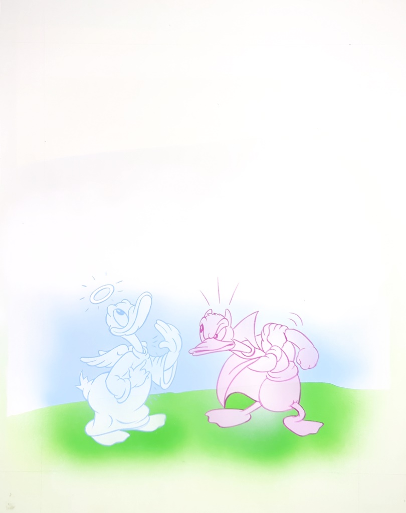 Disney-Originalzeichnung aus "Eine Ente wie du und ich" 1984 Donald Engel Teufel