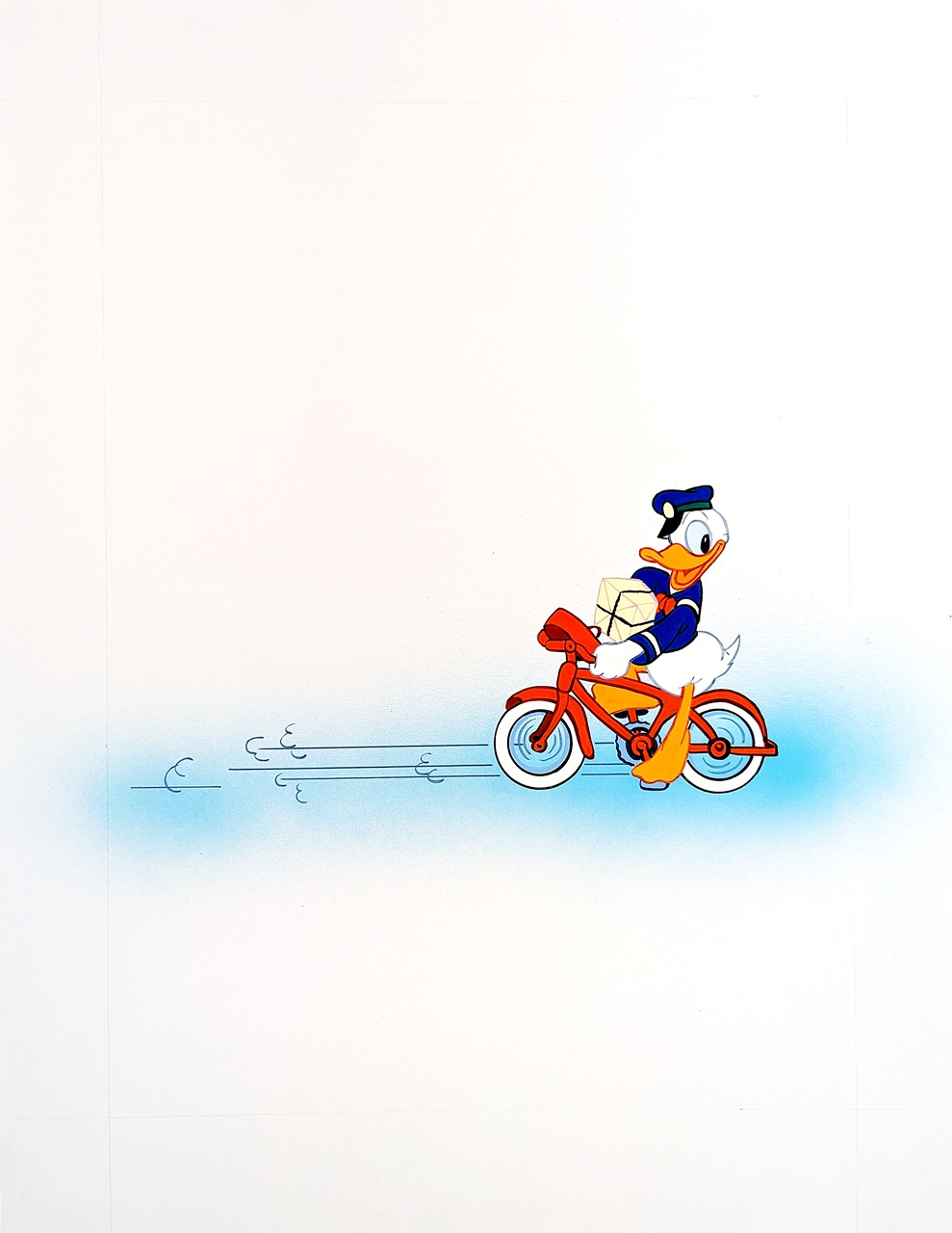 Disney-Originalzeichnung aus "Eine Ente wie du und ich" 1984 Donald als Postbote