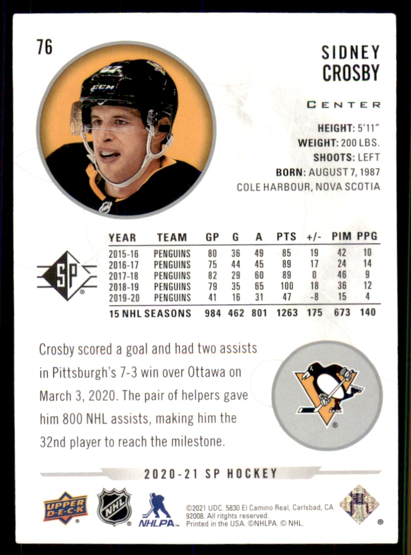 2020-21 SP #76 Sidney Crosby Pittsburgh Penguins