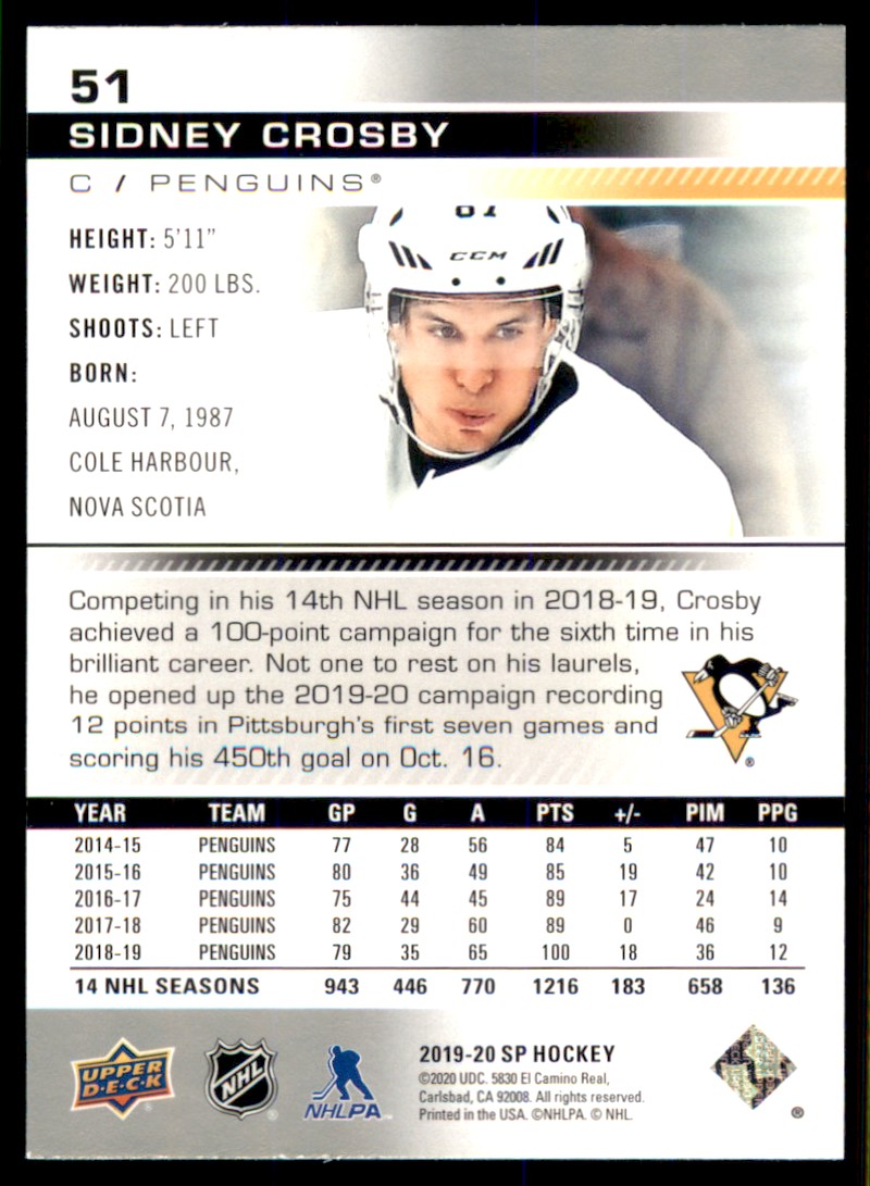 2019-20 SP #51 Sidney Crosby Pittsburgh Penguins