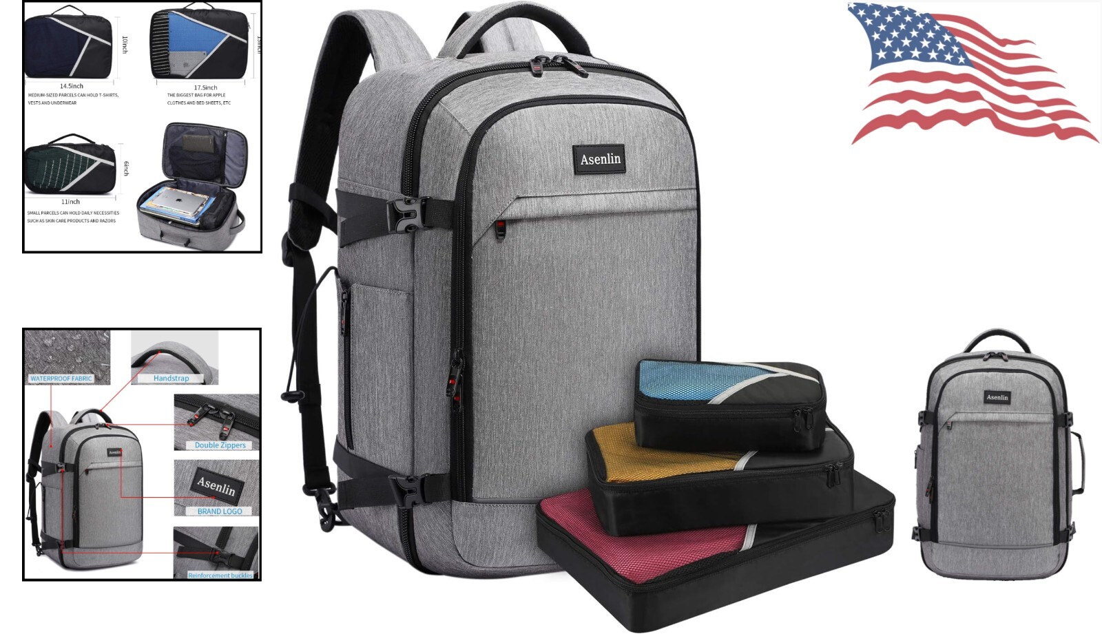 Travel Backpack - Water Resistant - 17 Inch Laptop Bag - Flight Approved - Grey