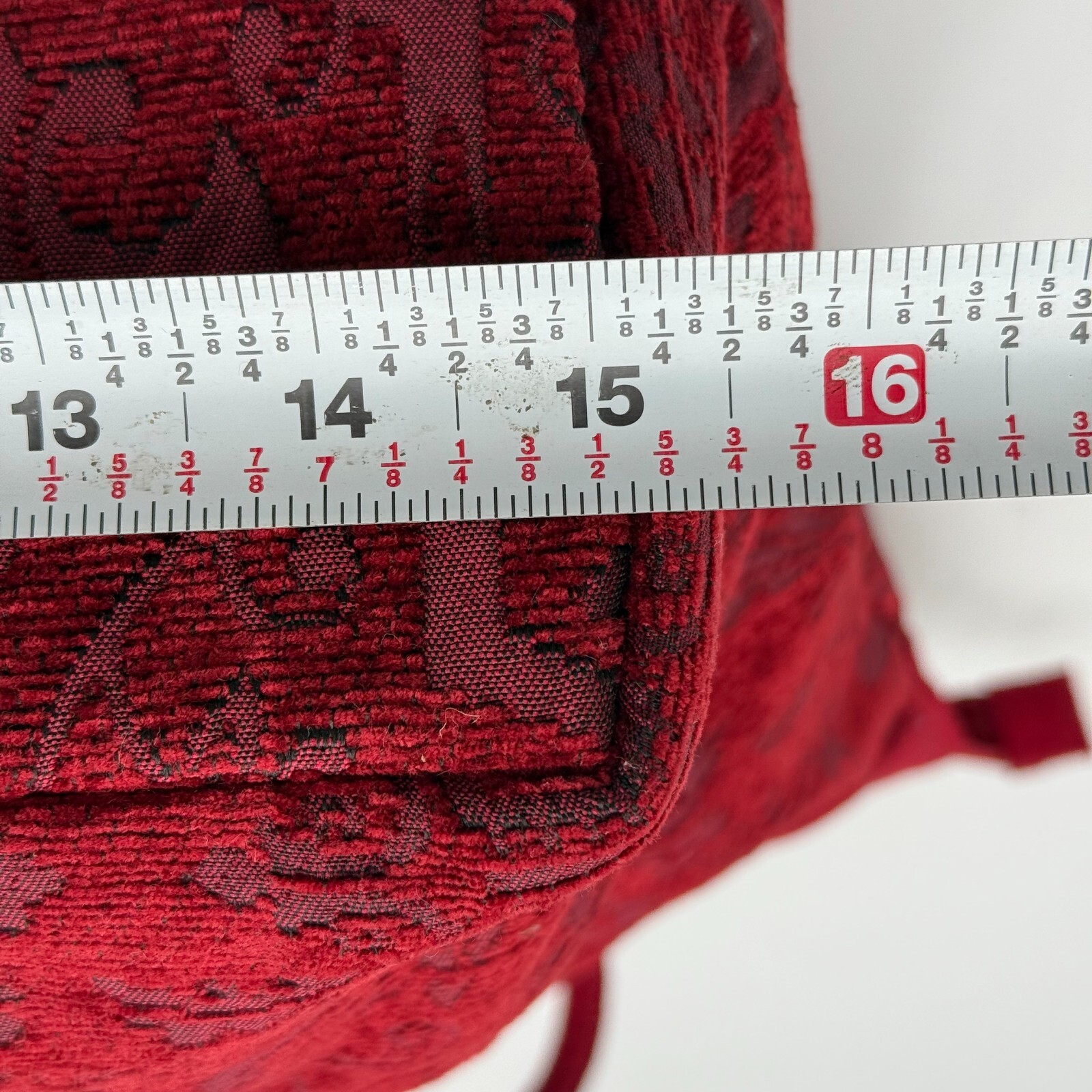 The red Buckingham pattern and gold-plated hardware give it a classic 80s vibe, while the cotton blend exterior material ensures durability. The bag features a zip closure, double handles, and a medium size with a width of 8 inches and a height of 12 inches. The bag also includes several features such as inner pockets, spot dry clean, and a bag charm accessory. It is suitable for travel, casual outings, or business meetings.