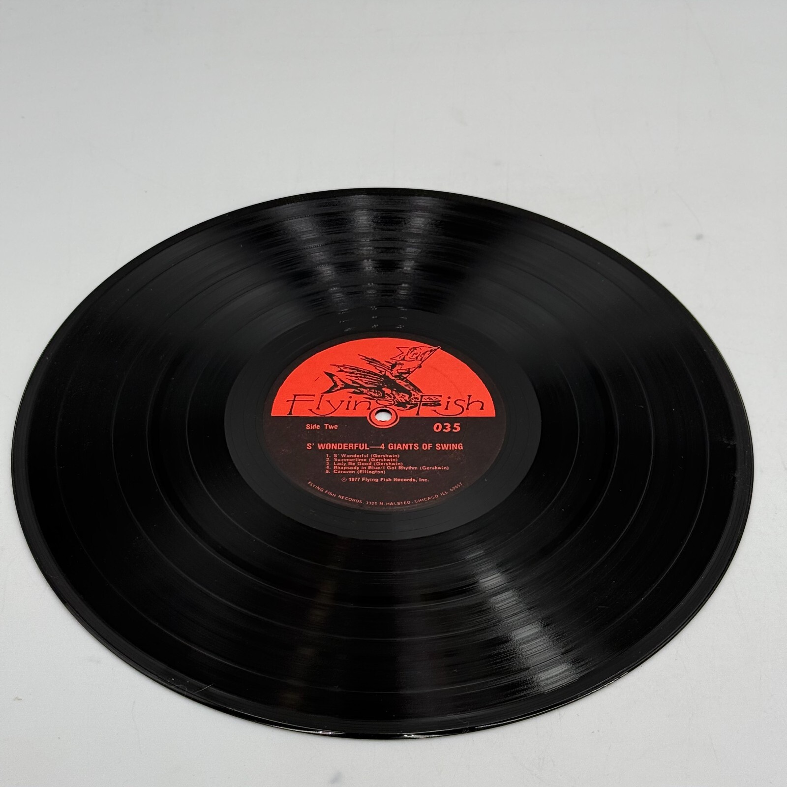 Dive into the smooth and rhythmic world of jazz with the 4 Giants of Swing - S' Wonderful, captured on a 1977 Flying Fish 035 R54 vintage vinyl LP.