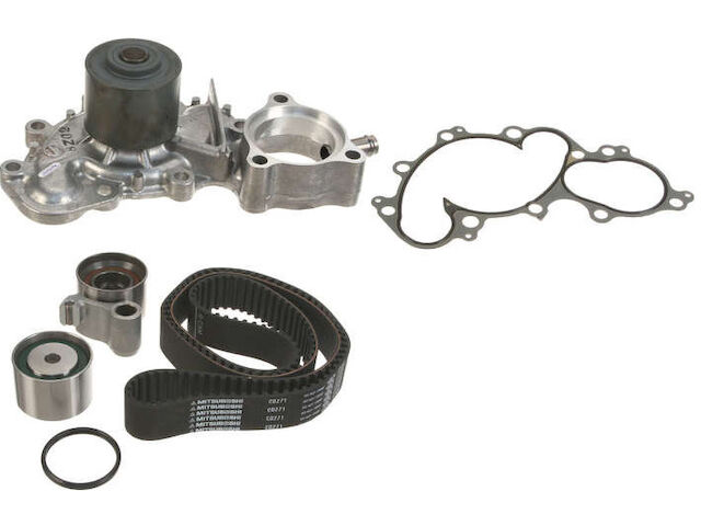 Detailed Notes: This kit contains a Mitsuboshi timing belt, an Aisin water pump w/ gaskets, a Koyo tensioner bearing, and a Koyo idler bearing. The hydraulic tension adjuster is serviced separately from this kit. Note that the water pump in this kit has a pipe at the thermostat housing for the factory engine oil cooler. For engines without the factory oil cooler, order timing belt kit #TCK271 (without water pump) and order the correct water pump separately.
