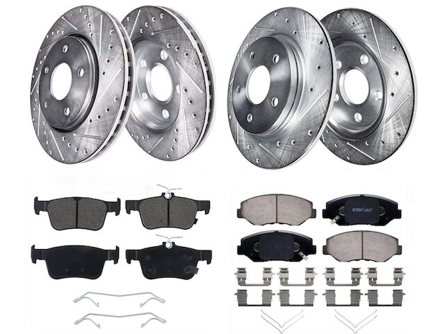 Features:- Kit Includes: (2) Front Drilled and Slotted Brake Rotor + (2) Rear Drilled and Slotted Brake Rotor + (2) Front Ceramic Brake Pad + (2) Rear Ceramic Brake Pad + (2) Brake Fluid & Cleaner
