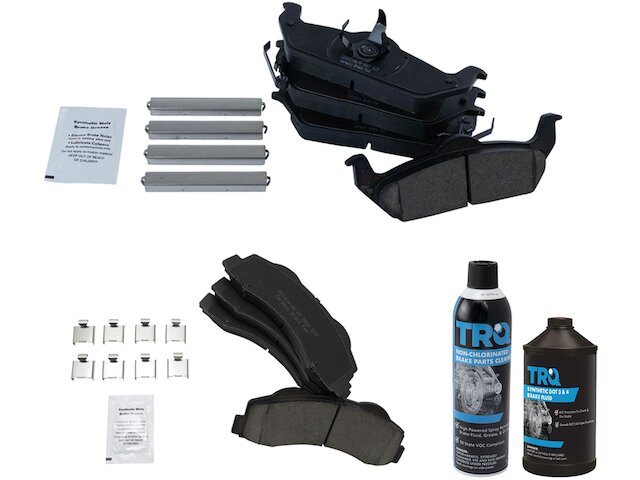 - Package Contents: (1) 12 oz DOT 3 & 4 Brake Fluid; (1) 13 oz Non-Chlorinated 50 State Formula Brake Cleaner; (1) Front Ceramic Brake Pad Set with Contact Point Grease & Hardware; (1) Rear Ceramic Brake Pad Set with Contact Point Grease & Hardware