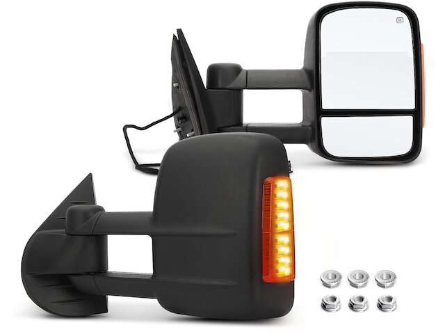 Detailed Notes: 2 Pcs Textured Black Powered Heated Towing Mirror Assembly with Turn Signal for Chevy Silverado 1500 GMC