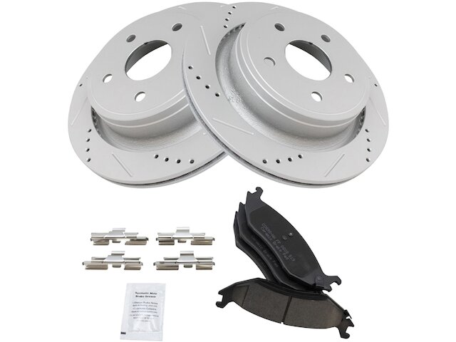 - Package Contents: (2) Rear Performance Brake Rotors; (1) Rear Ceramic Brake Pad Set; Brake Pad Contact Point Grease; Brake Pad Hardware