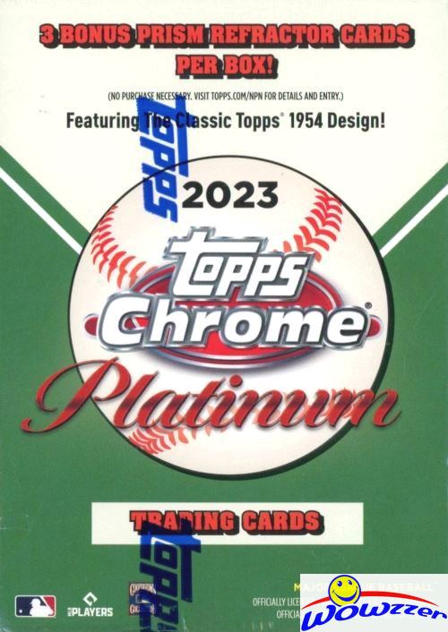 Wowzzer! We are Proud to offer this 2023 Topps Chrome Platinum Baseball EXCLUSIVE Factory Sealed Blaster Box! This EXCLUSIVE Factory Sealed Box Includes (8) Packs and 4 Cards per Pack Including (3) PRISM REFRACTOR Cards! Jumping into another absolute classic in the Topps vault, 2023 Topps Chrome Platinum celebrates the iconic 1954 Topps design! Collect the entire 500-card Base Set across a variety of color and pattern chrome parallels! Look for Rookies of Adley Rutschman, Josh Jung, Corbin Carroll, Gunnar Henderson, Jordan Walker, Francisco Alvarez, Anthony Volpe, Riley Greene & Many More! This Product is Loaded! Good Luck with your Pulls!
