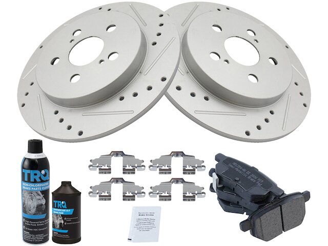 - Package Contents: (1) 12 oz DOT 3 & 4 Brake Fluid; (1) 13 oz Non-Chlorinated 50 State Formula Brake Cleaner; (1) Rear Semi-Metallic Brake Pad Set with Contact Point Grease & Hardware; (2) Rear G-Coated Performance Brake Rotors