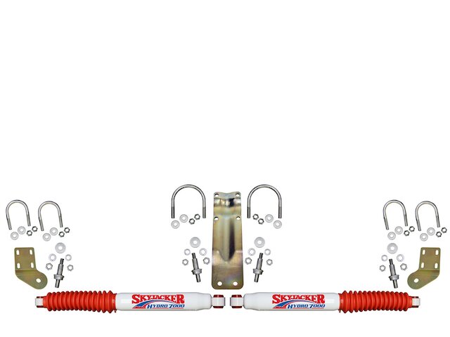 Notes:Steering Stabilizer Dual Kit -- 7000; With White Cylinders; Red Boots; Fits Lift Heights 0-8.5 in.~Does Not Fit Models Equipped With 1 3/4 in. Tie Rod