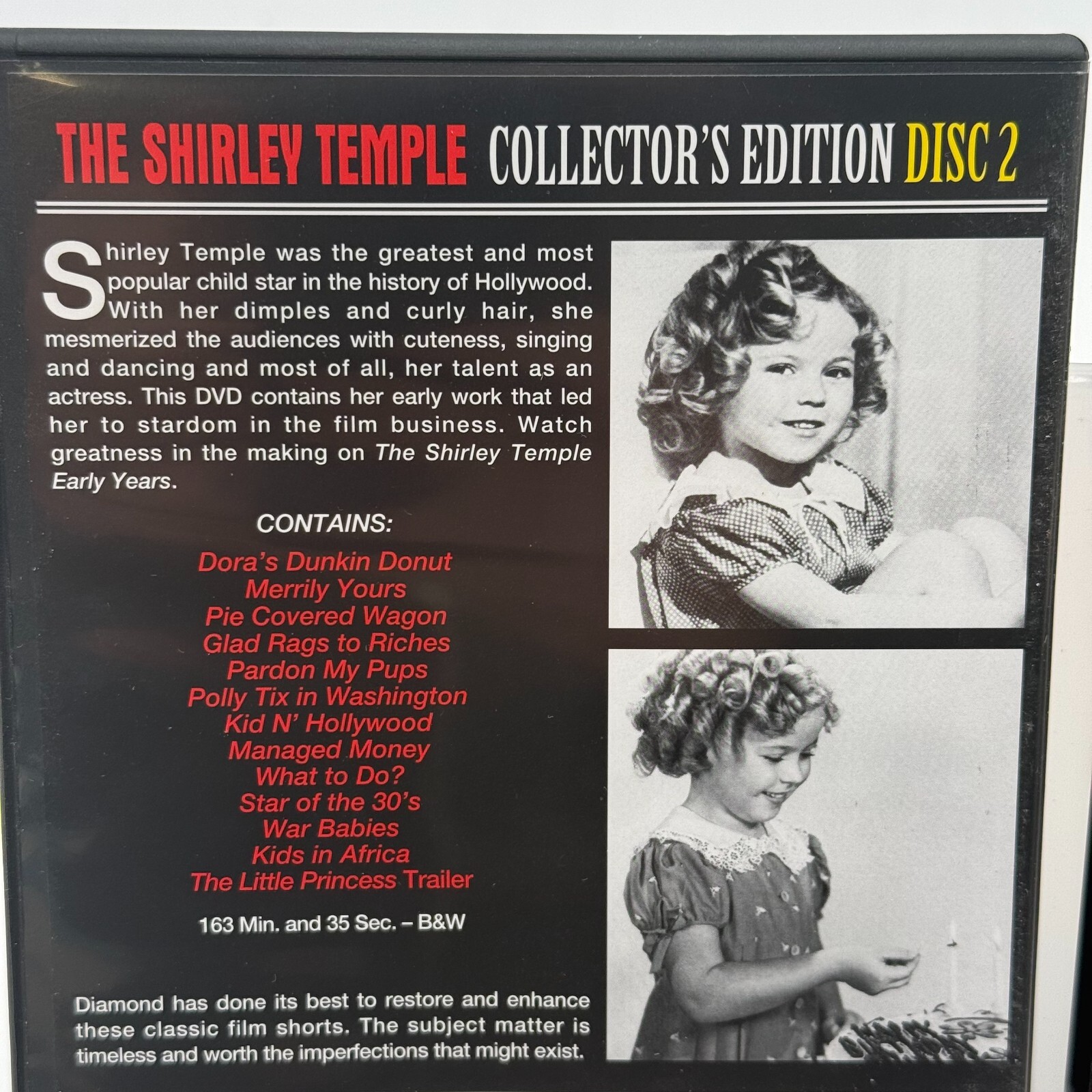 Immerse yourself in the timeless charm of Shirley Temple with the Collector's Edition DVD Box Set. This set captures the essence of a bygone era with the iconic curly-haired child star in classic films that have stood the test of time. Perfect for collectors and fans of vintage cinema, the box set includes two DVDs, each packed with hours of entertainment.