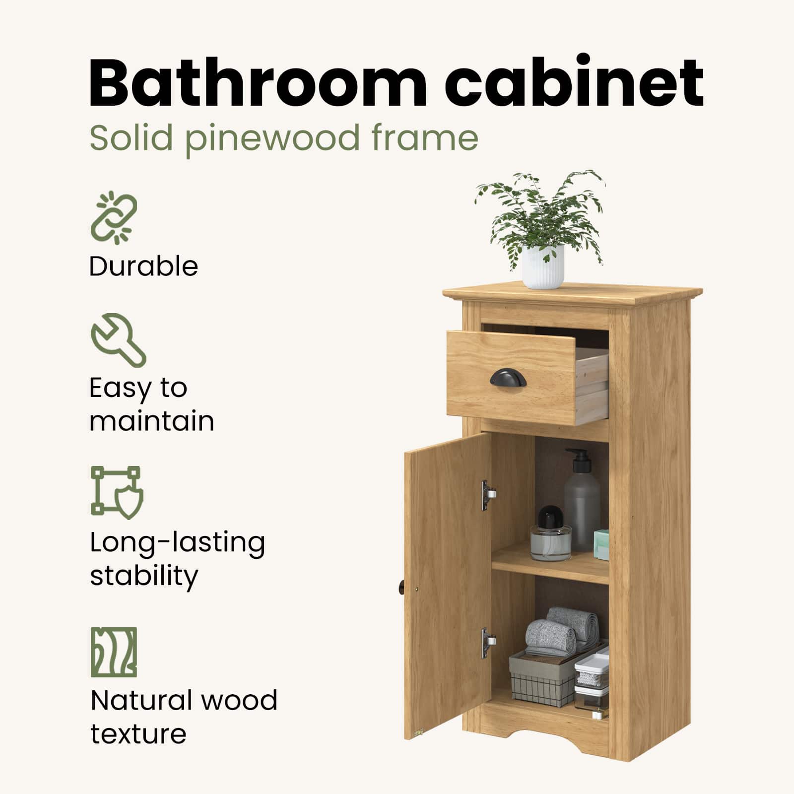 - Engineered Wood Elegance: Emphasizing durability and sophistication, the entire design of this cabinet showcases the natural charm of engineered wood. Its surface gleams with a finished look, while the material resists daily wear and tear, assuring a prolonged lifespan even in humid bathroom conditions. This eco-conscious choice goes towards a seamless, stylish appearance that complements various décor styles, inviting a serene appeal into your bathroom space.