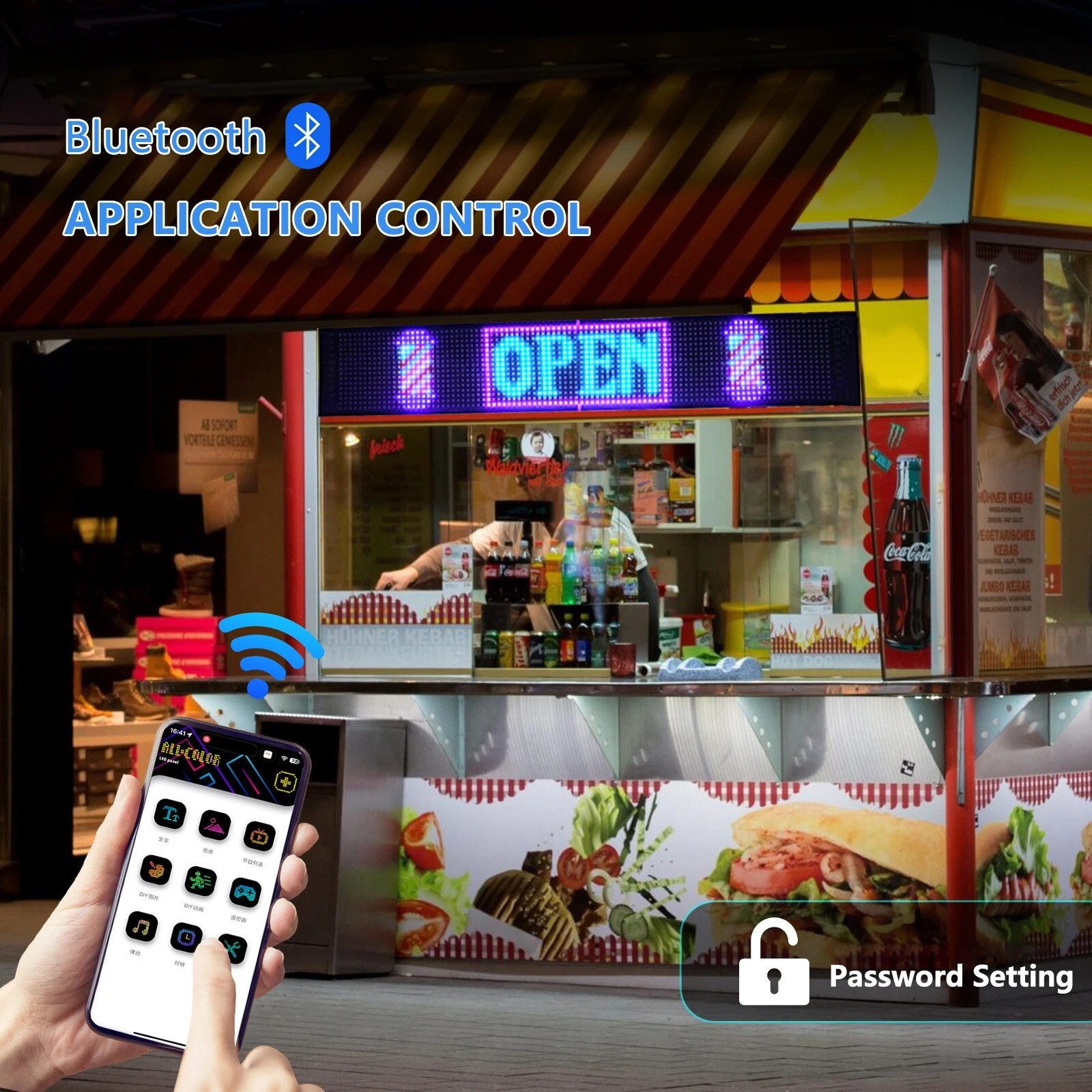 l 【Smart APP Control】LED sign is controlled by a Bluetooth-connected app, which supports connecting multiple LED displays at the same time, making your store more eye-catching, the app has built-in many interesting modes and animations. Your phone makes it easier to customize fun patterns and text to personalize your store.