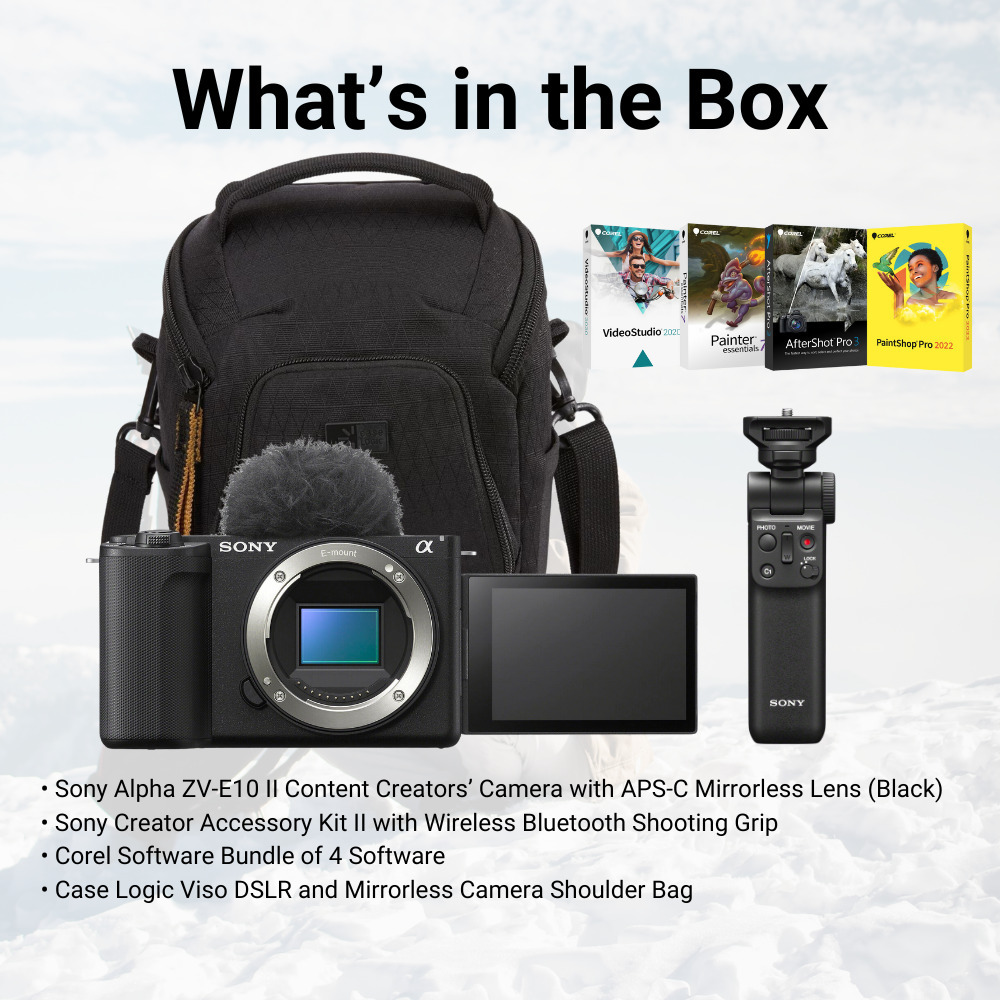 Sony Alpha ZV-E10 II Content Creators’ Camera with APS-C Mirrorless Lens and Lens Kit (Black)