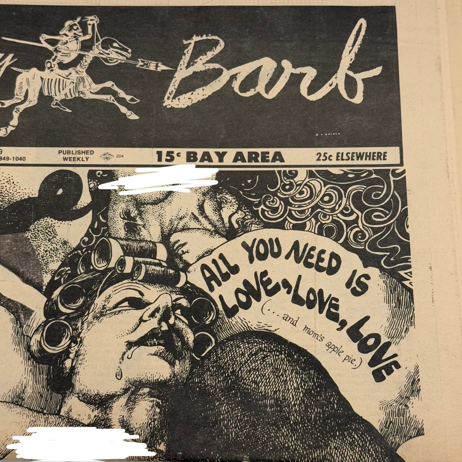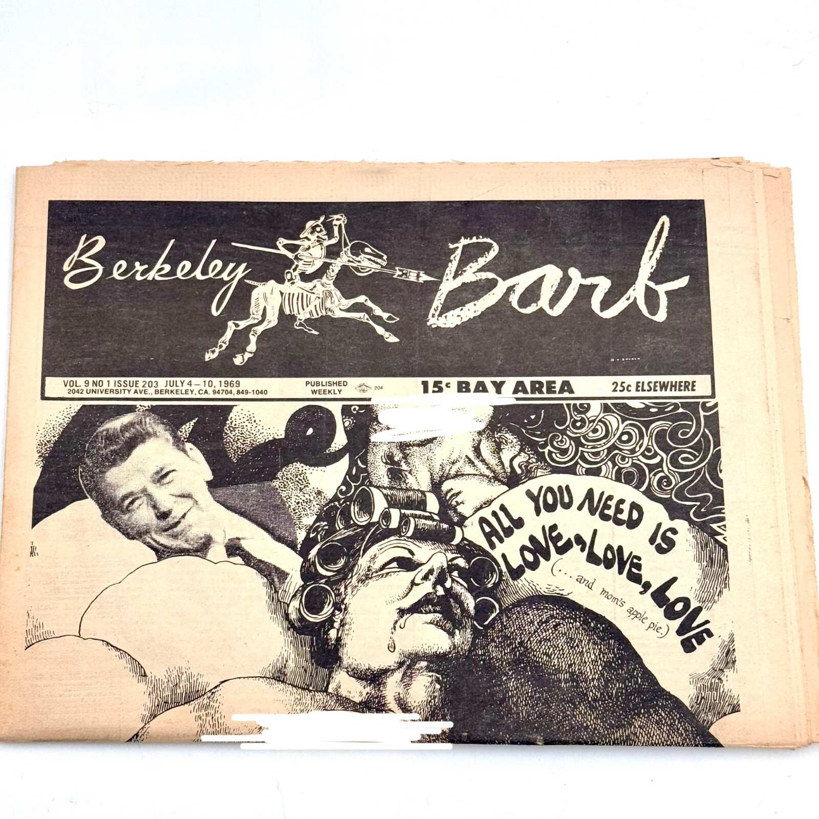 Dive into a piece of history with the Berkeley Barb Full Issue 203, featuring the iconic "All You Need Is Love" Reagan cover art. This rare edition hails from 1969, capturing the essence of a vibrant era in US Comics tradition. A must-have for collectors and enthusiasts, it's not just a newspaper, but a snapshot of cultural revolution and political satire.