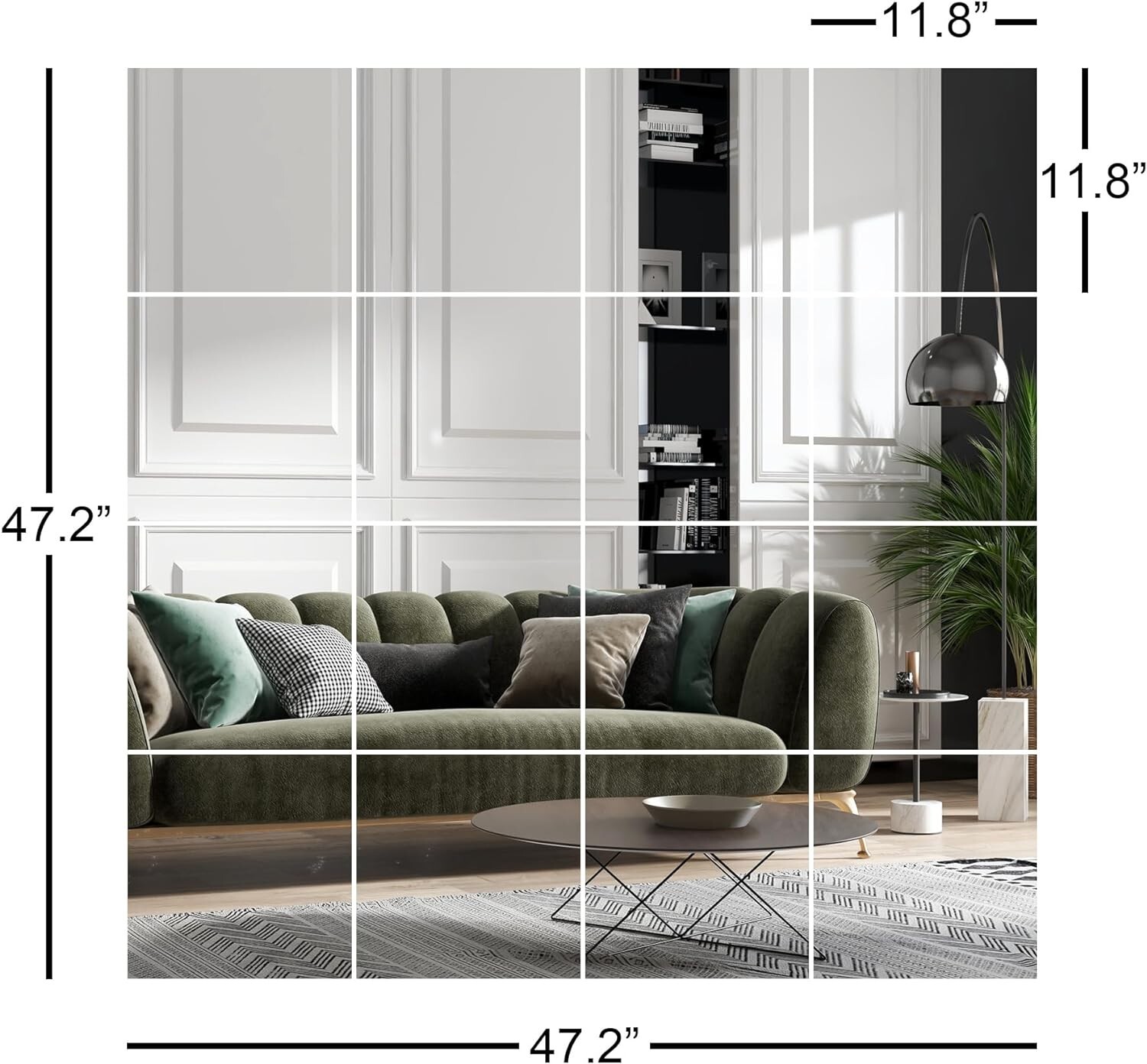 | Product Line: Home Gym Mirrors | Unit Quantity: 16 | Features: Self-Adhesive,Frameless,High Definition,Full Length,Easy Installation | Room: Bathroom,Bedroom,Home Gym,Door |