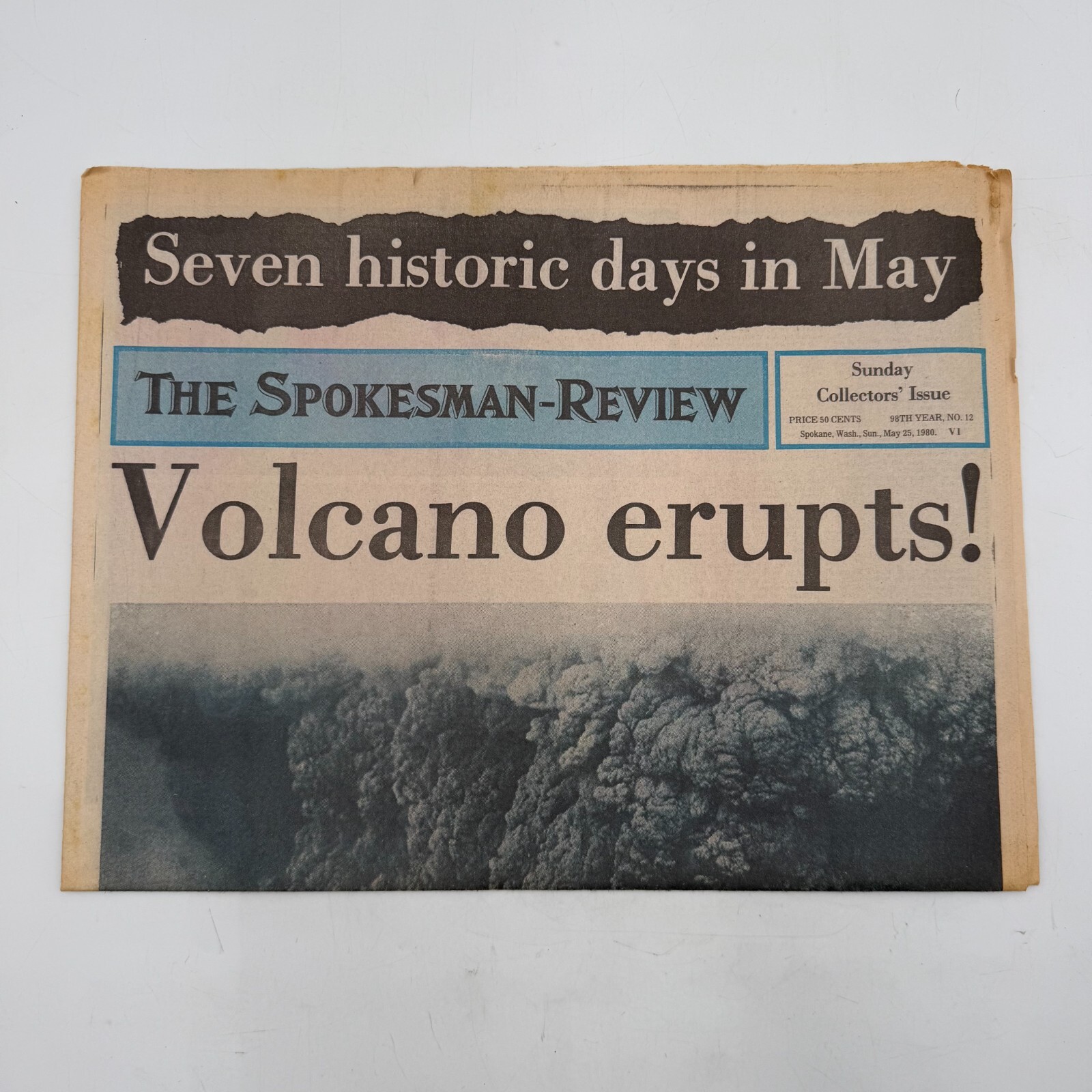 Capture a moment in history with the Spokesman Review Mount St. Helens Volcano Erupts! Collector Issue Newspaper from 1980. This newspaper offers a unique snapshot of the events surrounding the infamous volcanic eruption, providing both collectors and history enthusiasts with an authentic piece of the past.