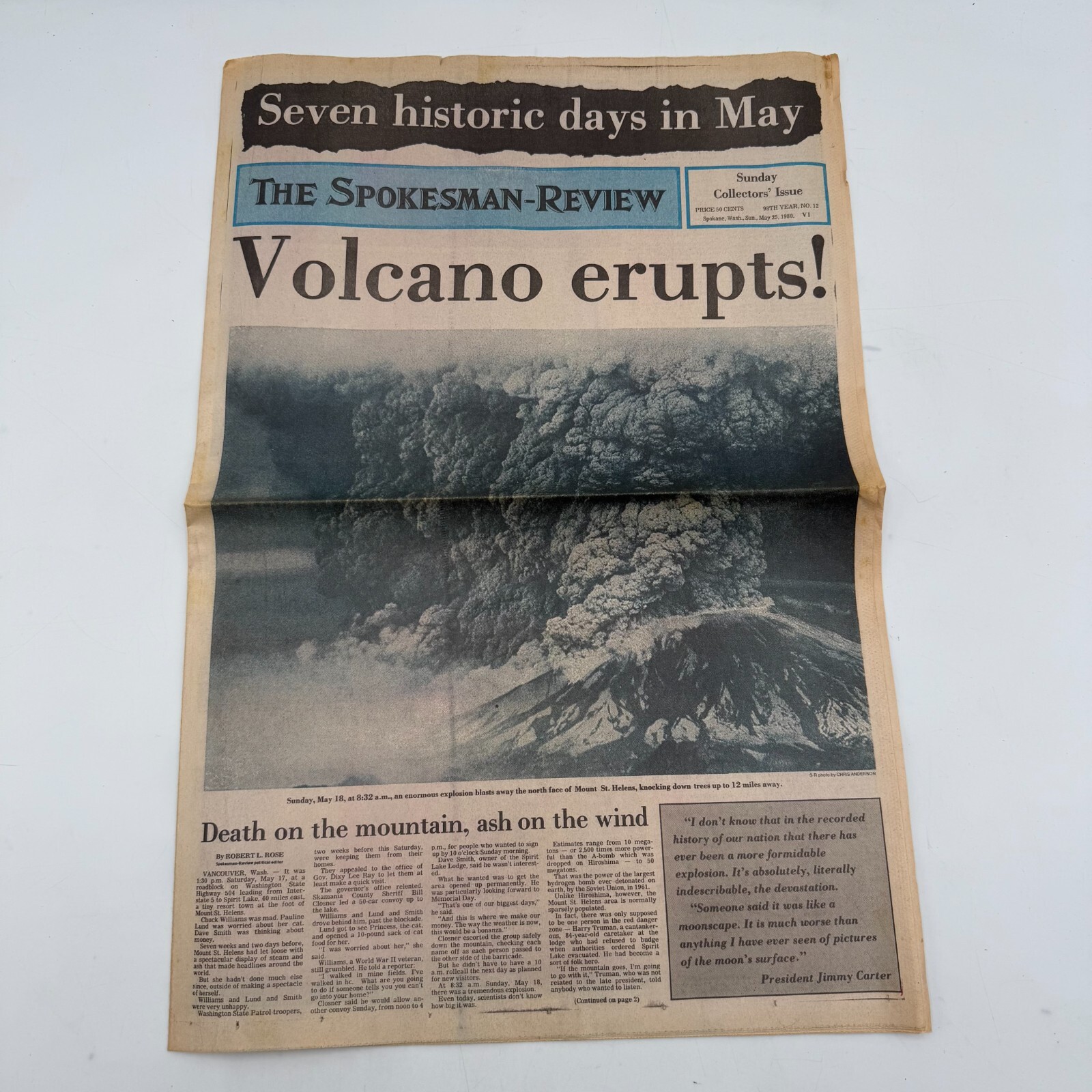 The newspaper covers the seminal moments leading up to and following the eruption, with in-depth reporting and vivid photography that bring the story to life. It serves as an invaluable resource for anyone interested in the natural sciences, local history, or the development of journalism. Add this piece of journalistic heritage to your collection and own a tangible piece of the legacy of Mount St. Helens.