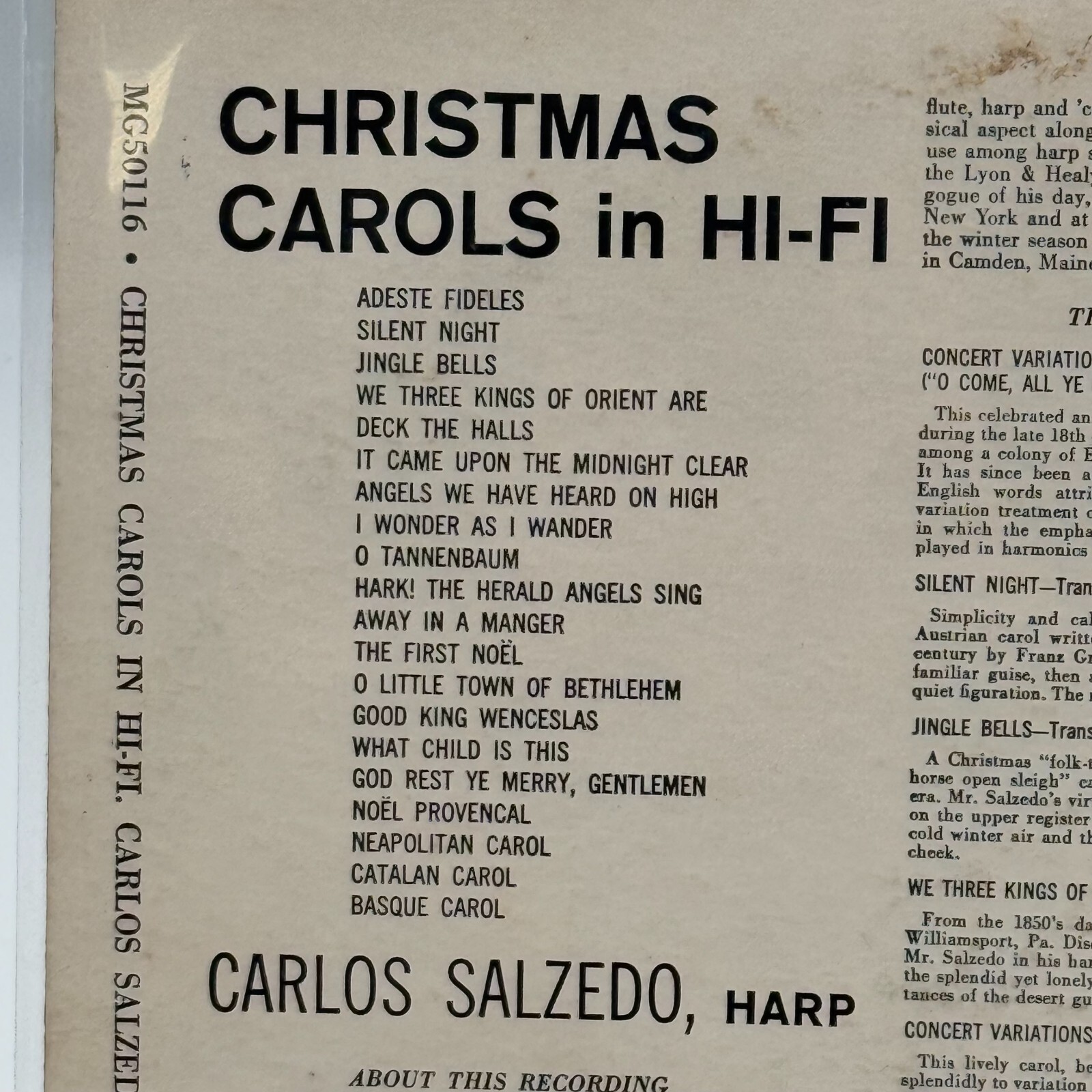 Dive into the festive spirit with the classical harmonies of Carlos Salzedo's "Christmas Carols in Hi Fi." This rare vinyl LP, presented by Olympian MG 50116, is a treasure for both collectors and enthusiasts of holiday music. The black vinyl material ensures a rich audio experience, highlighting the intricate melodies and arrangements that bring the yuletide season to life.