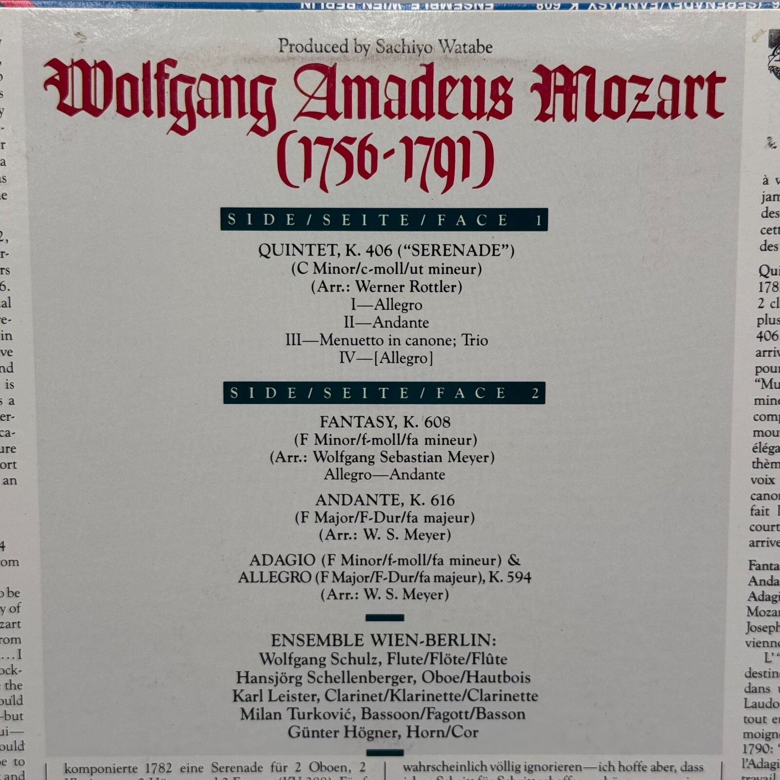 Crafted with the discerning ear in mind, this record brings together the timeless artistry of Mozart and the nuanced expression of vinyl. A perfect addition to any connoisseur's collection, this LP embodies the fusion of classic music with high-fidelity audio, capturing the essence of Mozart's legacy.