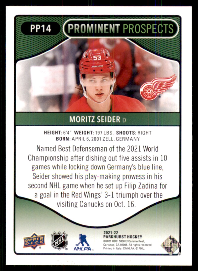 2021-22 Parkhurst Prominent Prospects #PP14 Moritz Seider RC Rookie Red Wings