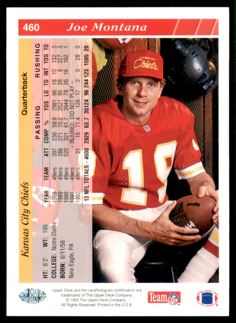 1993 Upper Deck #460 Joe Montana Kansas City Chiefs