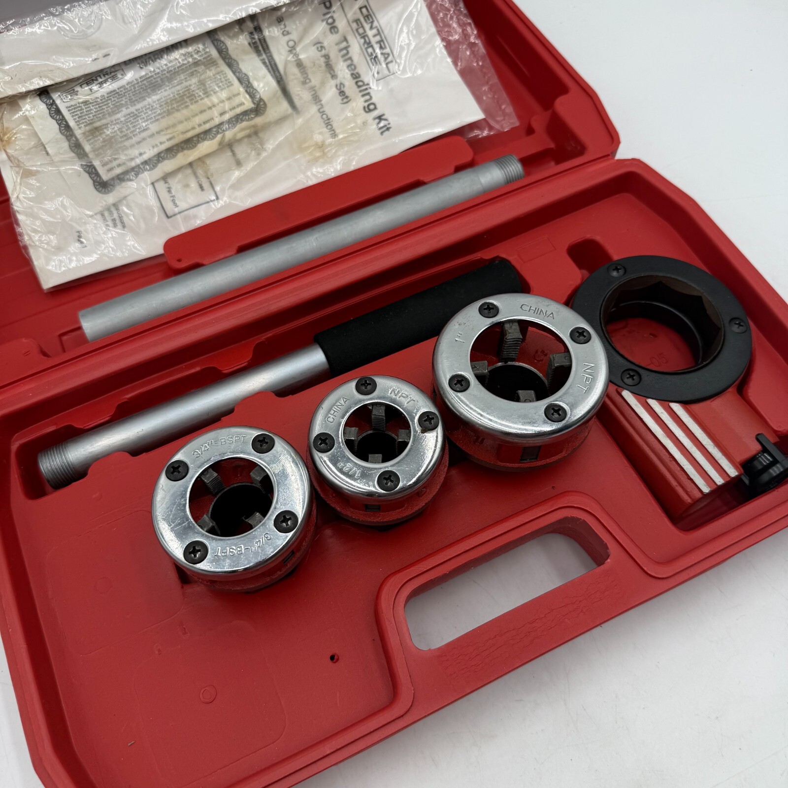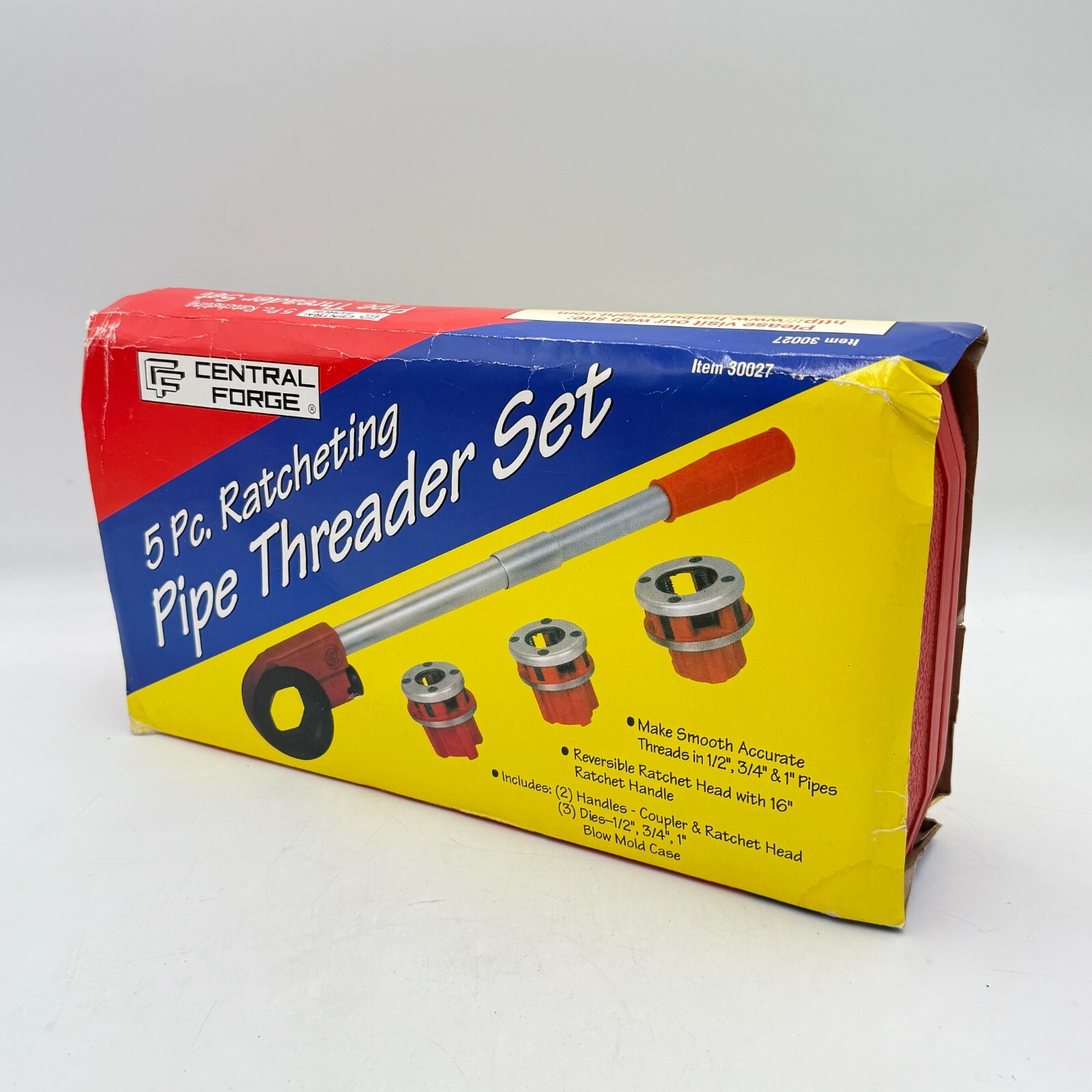 This 5-piece set of manual pipe threaders from Central Forge is the perfect addition to your pipe tools collection. With a thread size range of 1/2", 3/4", and 1" and a thread standard of NPT, this set is suitable for various applications. The kit includes a pipe die and die head, making it easy to thread pipes of different sizes.