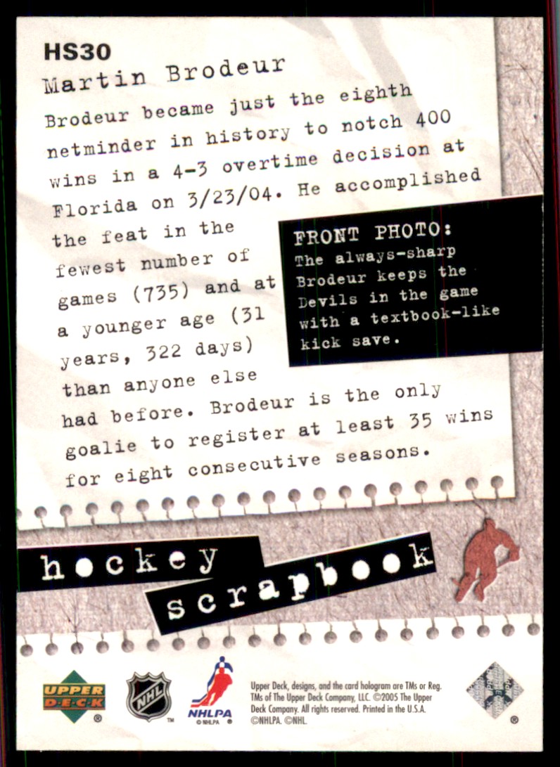 2005-06 Upper Deck Hockey Scrapbook #HS30 Martin Brodeur Devils