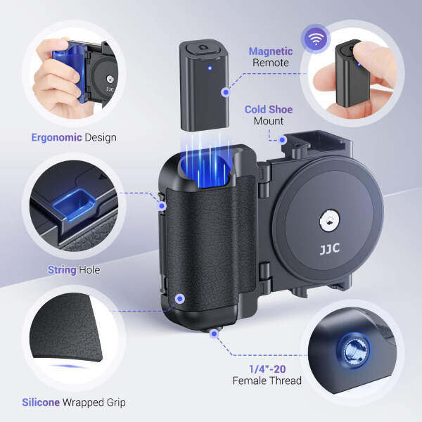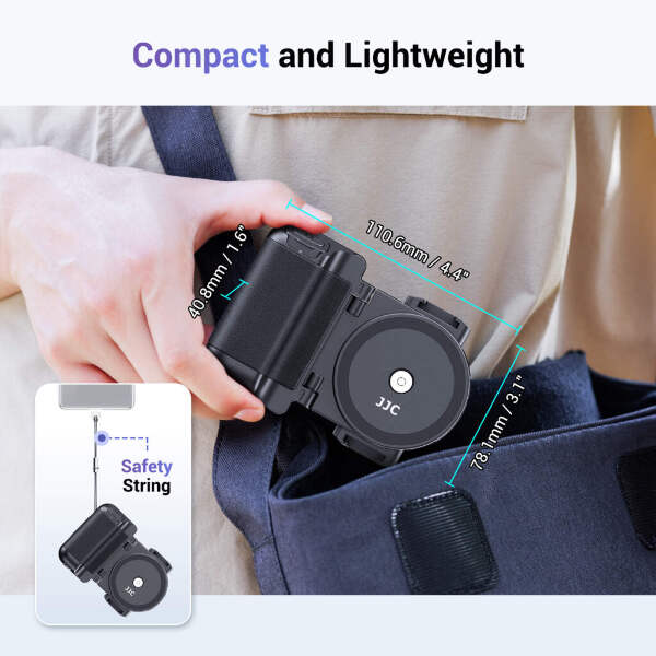 The JJC MSG-U1 BLACK Wireless Remote Phone Grip is expertly crafted for vloggers, live streamers, and selfie enthusiasts – designed to elevate your phone photography and video experience. Compatible with mainstream smartphones ranging from 2.2″ (55mm) to 3.5″ (90mm) in width, it ensures a secure and versatile fit for most devices.