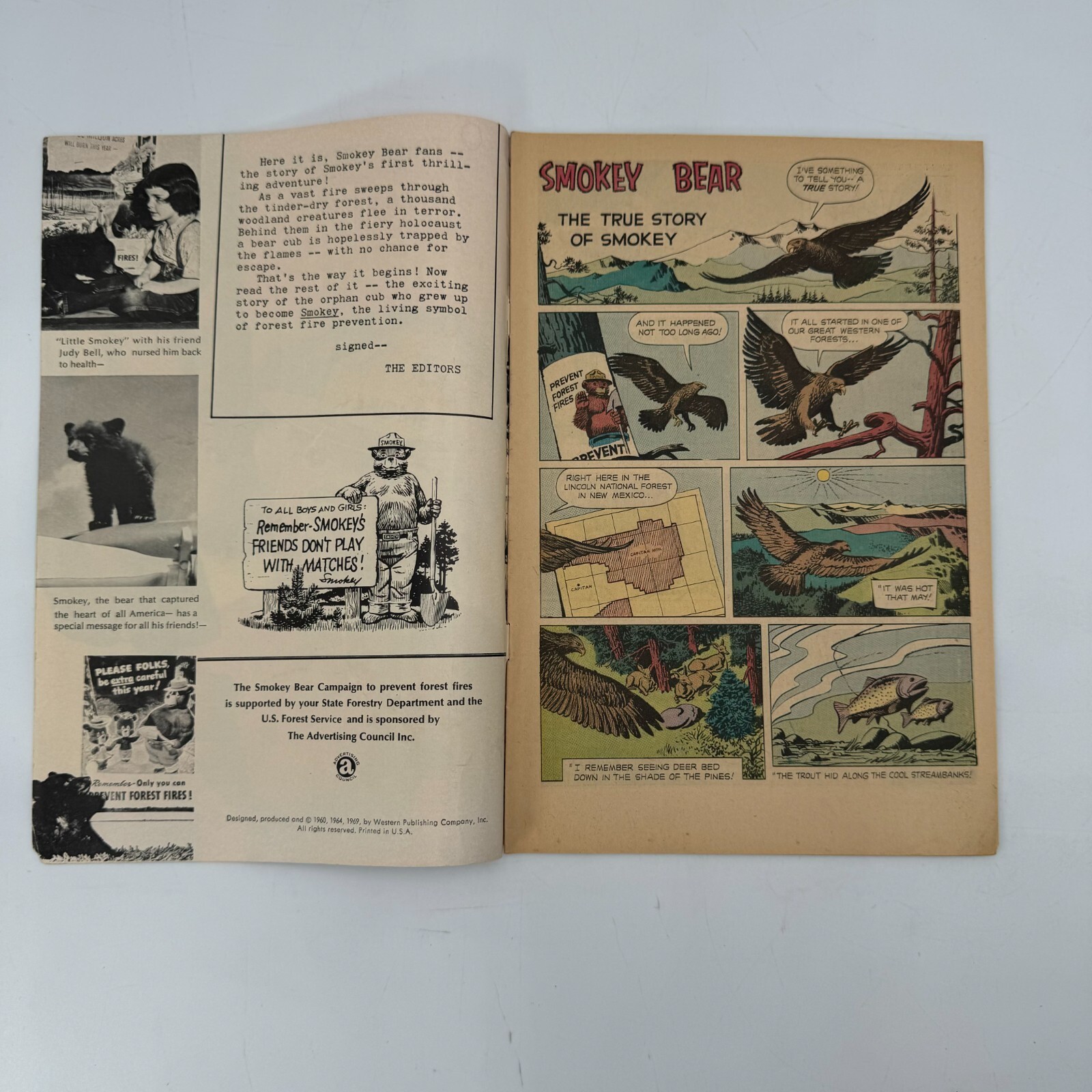 This lot includes two vintage educational comics featuring Smokey Bear, the beloved character from the US Comics tradition. These single issue comics are in the format of a classic comic book and are perfect for collectors and fans of comics. The series title is "Smokey Bear" and the genre is "Comics".