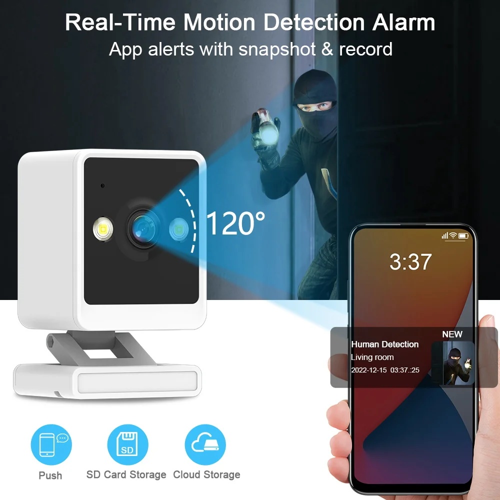 When someone enters the shooting area, the wireless network camera will detect someone moving and promptly alert your phone.