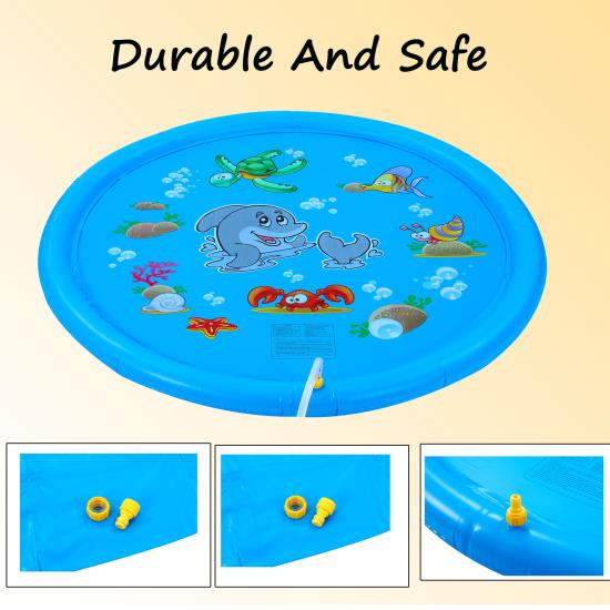 Get The Strongest Splash Pad For Kids: Made of long-lasting PVC, our toddler splash pad is more heavy-duty than similar toddler toys. It is tear-resistant, durable, and comes with a handy repair kit, for your convenience.
