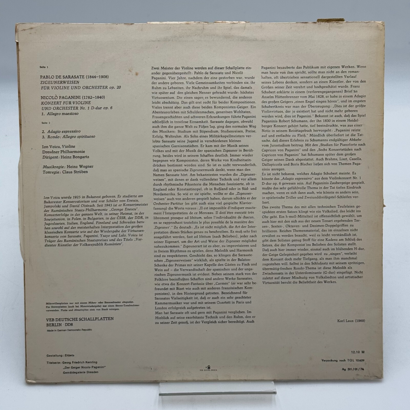Experience the exhilarating brilliance of Paganini's Violin Concerto No.1, masterfully conducted by Sarasate with the Zigeunerweisen, a piece that showcases the virtuosic prowess of the violin. Ion Voicu, a renowned violinist, brings this classical masterpiece to life with Eterna Records, LP 825840, capturing the essence of the genre in a way that only vinyl can deliver.