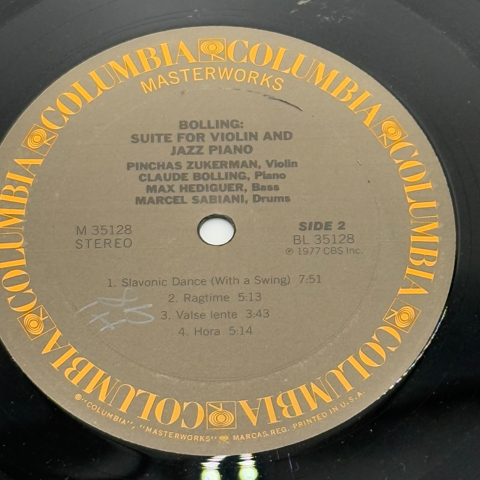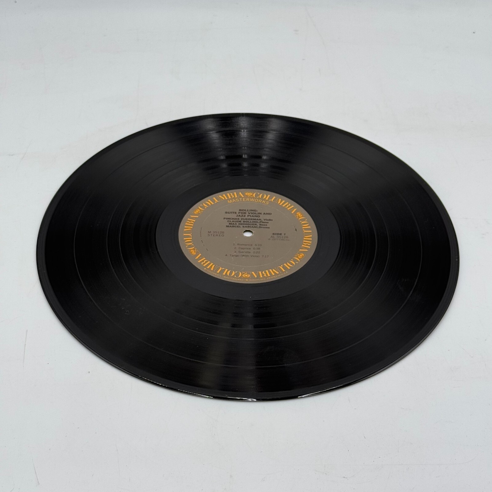 The product is a 1978 vinyl LP titled "Suite For Violin And Jazz Piano" by Claude Bolling and Pinchas Zukerman, released under CBS Masterworks.