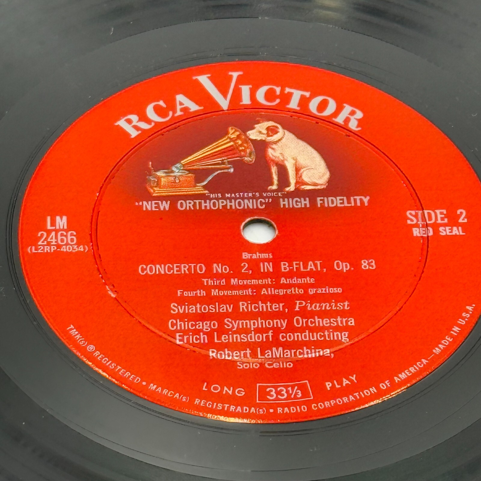 The product is a classic vinyl LP recording of Sviatoslav Richter performing Brahms Concerto No. 2 with the Chicago Symphony Orchestra in 1960.