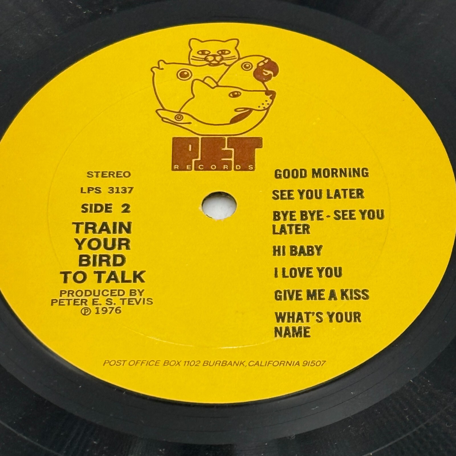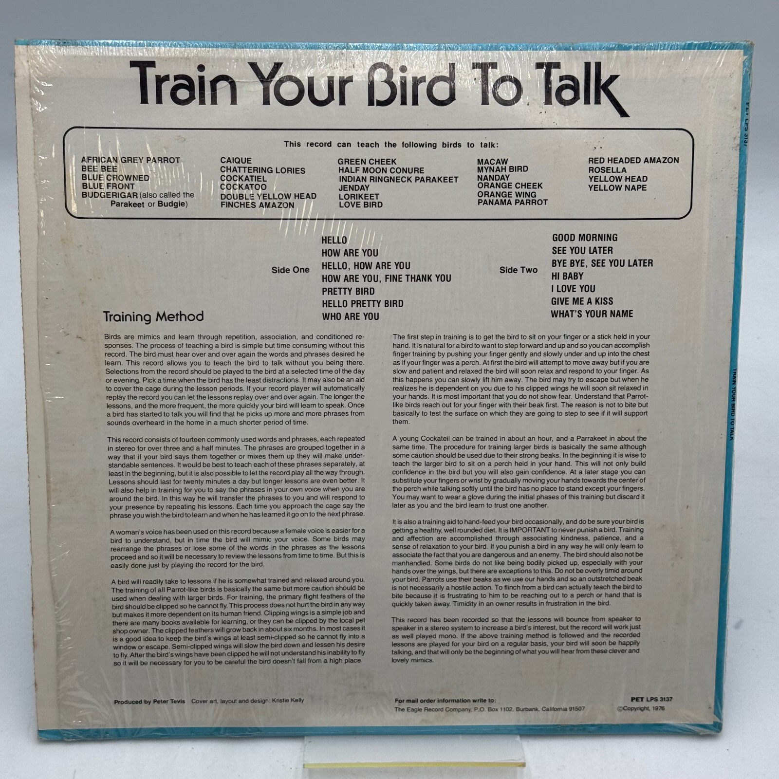 Explore the fascinating world of avian communication with "Train Your Bird to Talk: 14 Lessons Plus Training Method," a unique vinyl LP record from 1976.