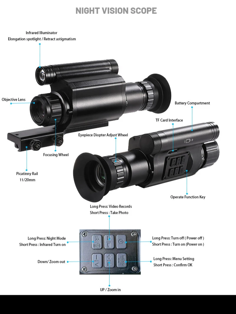 NV075 New Arrival Night Vision 1080P HD Video Camera Crosshair Cursor Target Position Camping Clip-on Digital Monocular