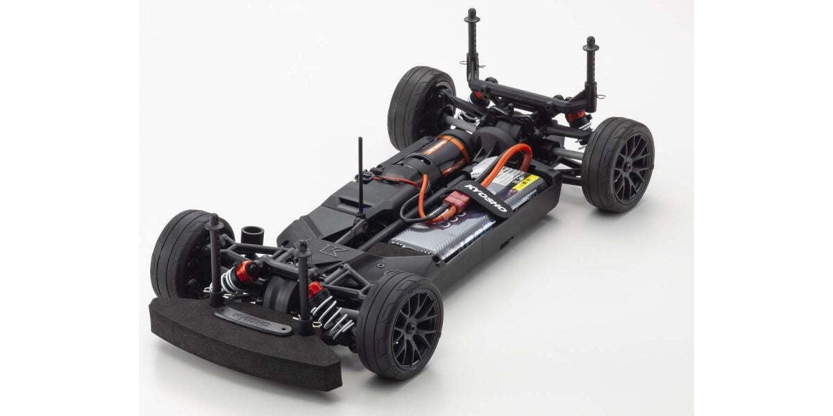 For the pure enjoyment of R/C car driving, the combination of a beautifully reproduced car body with the FAZER series chassis can't be beaten. Kyosho has taken its standard touring car chassis and given it a full model makeover that has evolved performance to a new level. A simplified design with fewer parts has improved maintenance efficiency and reduced weight while core strength and rigidity has been increased through new materials and ribbing and stiffeners on front and rear. In addition, the symmetrical chassis design synergizes excellent front-rear balance through the suspension with responsive control, irrespective of power source. Featuring front & rear gear differentials, oil shocks and full ball bearing specs, the high durability and impact resistance allows drivers to unleash the full potential of the chassis. Brake disc wheel hubs with two different offsets (0mm, +5mm) provide compatibility with 190mm and 200mm width body styles. The wheelbase can be adjusted to 260mm by replacing some parts (sold separately) for compatibility with other 1/10 scale body styles. The Readyset package comes fully assembled and includes everything except charger and batteries.