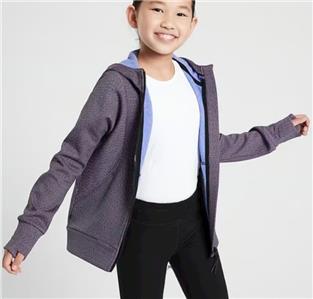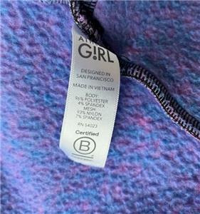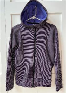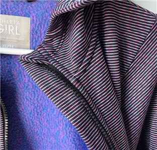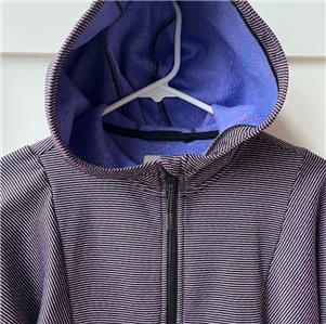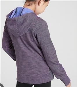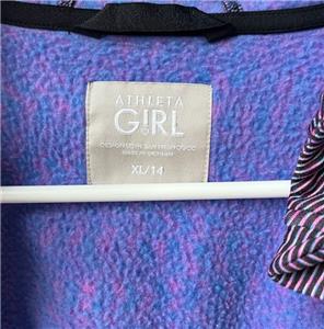 This jacket is very gently worn, in excellent to like new condition, no rips or stains, does have a tiny 'pick' in the fabric in the front, (see pic). It is size XL (14) and made by Athleta Girl. This fleece lined jacket zips up the front, has an attached hooded, thumbholes, two front pockets and an inside pocket. It is made with polyester and spandex and machine washable. Very nice jacket.
