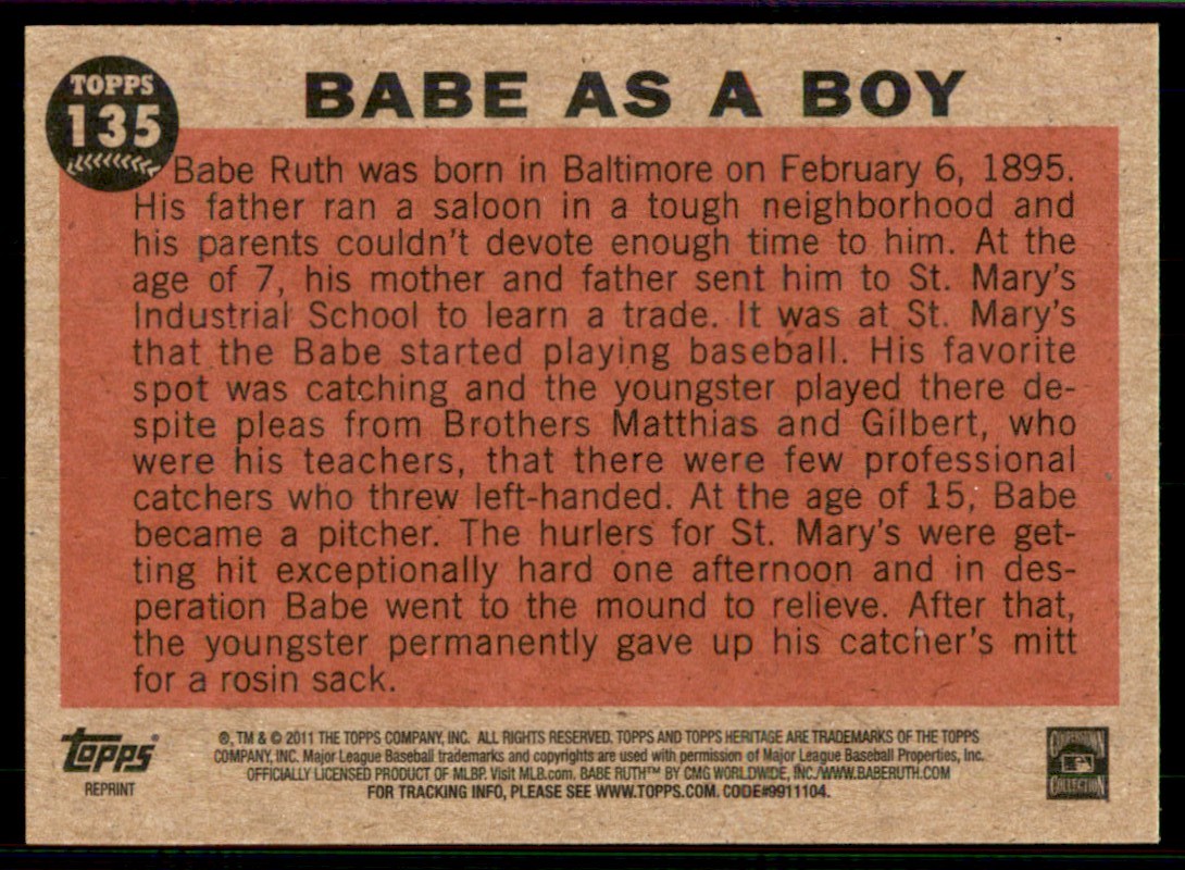 2011 Topps Heritage #135 Babe Ruth Reprint New York Yankees