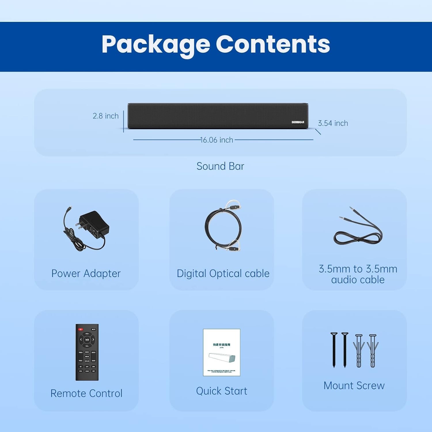 Not only does our Sound Bar offer exceptional sound quality, but it also boasts a stylish and compact design that fits seamlessly under your TV or on the wall. Plus, with worry-free after-sales support and friendly customer service, you can trust that you're getting a high-quality product backed by a reliable team.