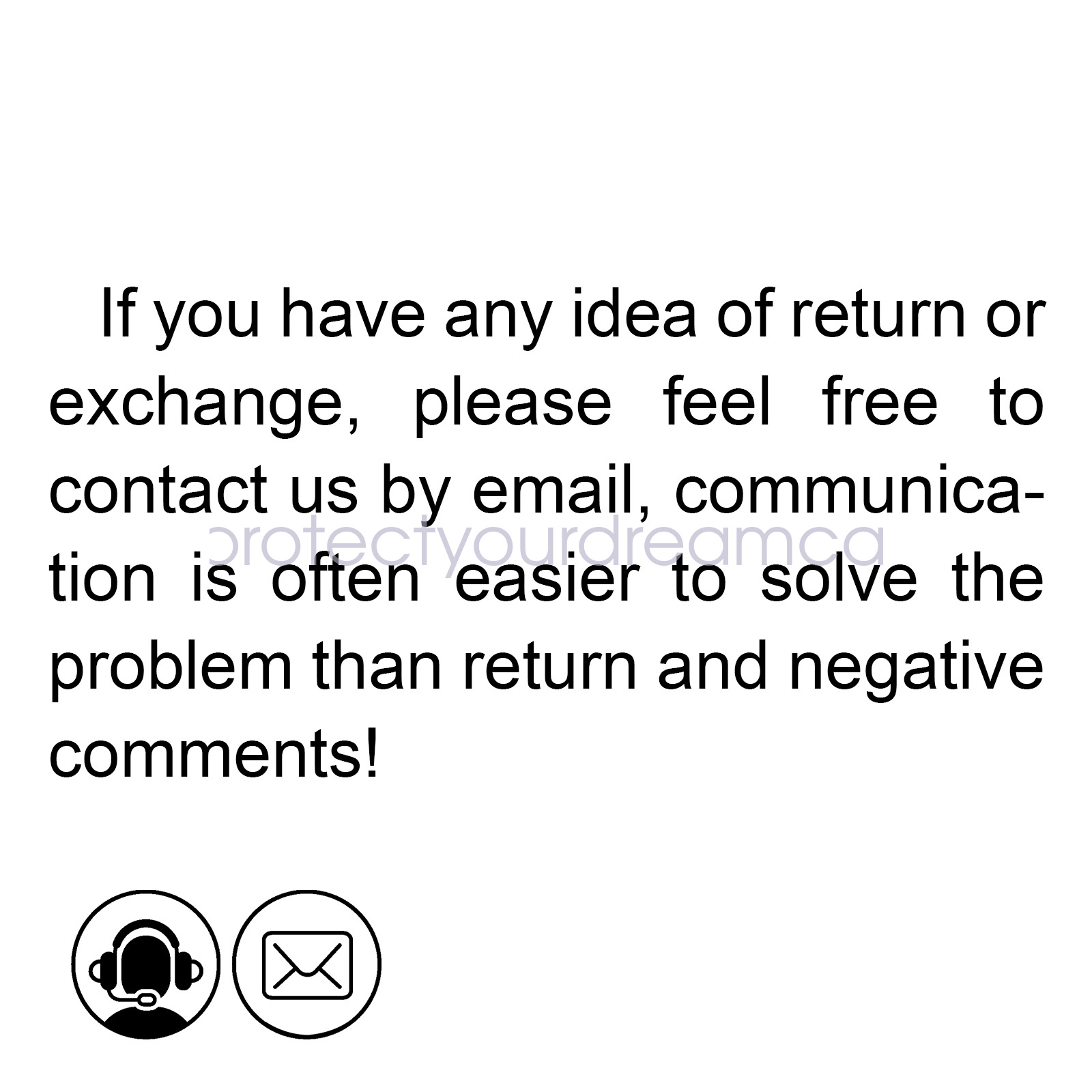 Please contact us first when return, exchange and refund is required. Any direct return of purchased items will not be processed.