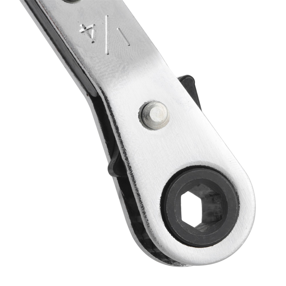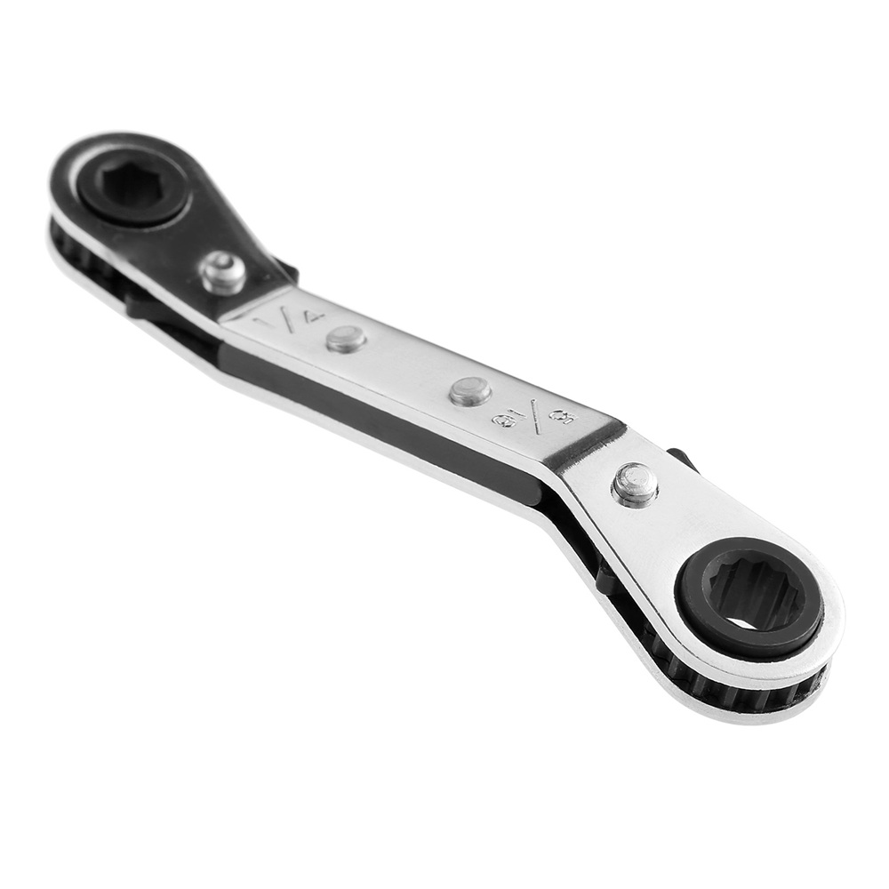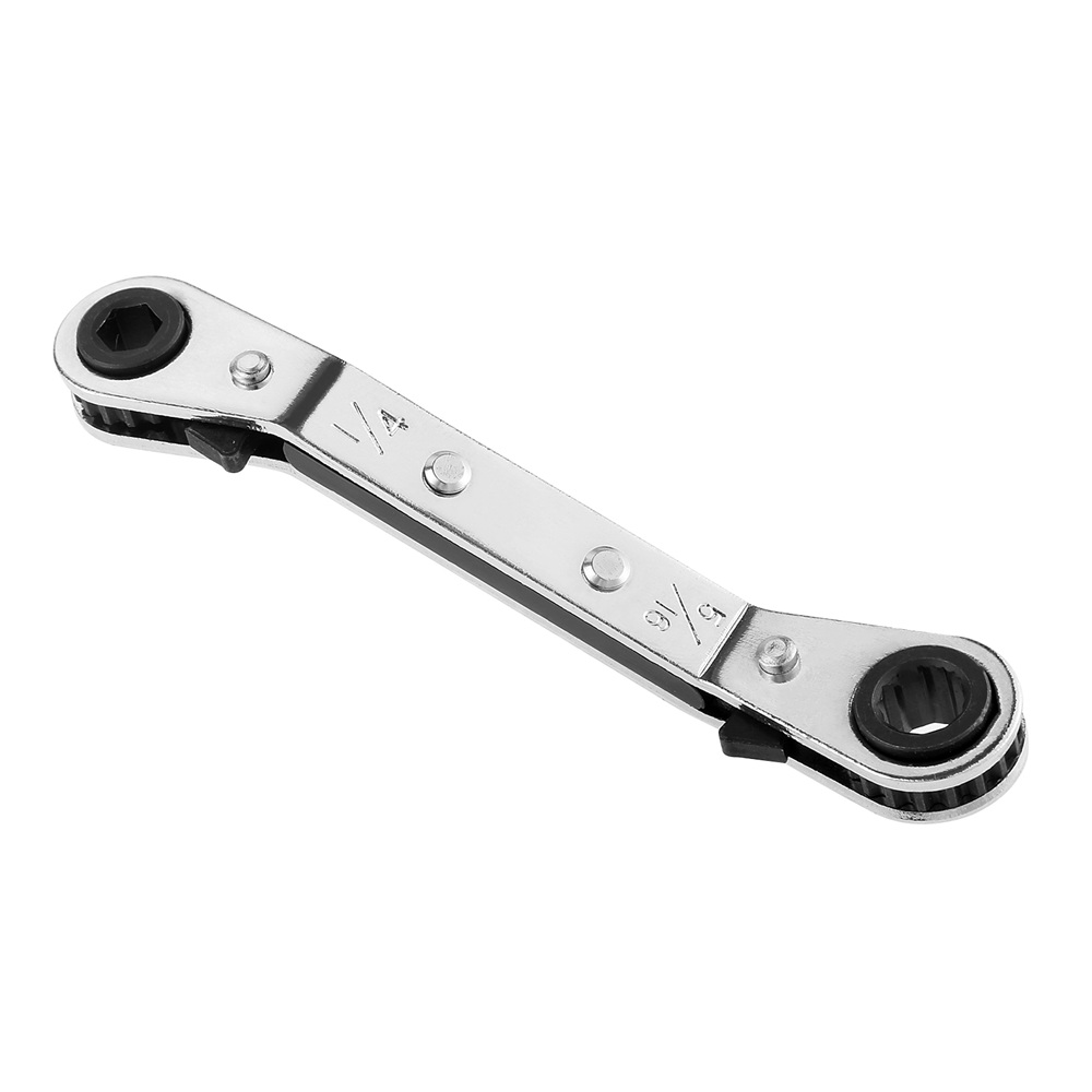 Specification: 1, Air conditioning wrench with 4 different sizes: 3/16" 1/4" 5/16" and 3/8". Quick-flip reversing lever for quick reverse ratcheting action. Sockets are clearly marked with hex sizes.