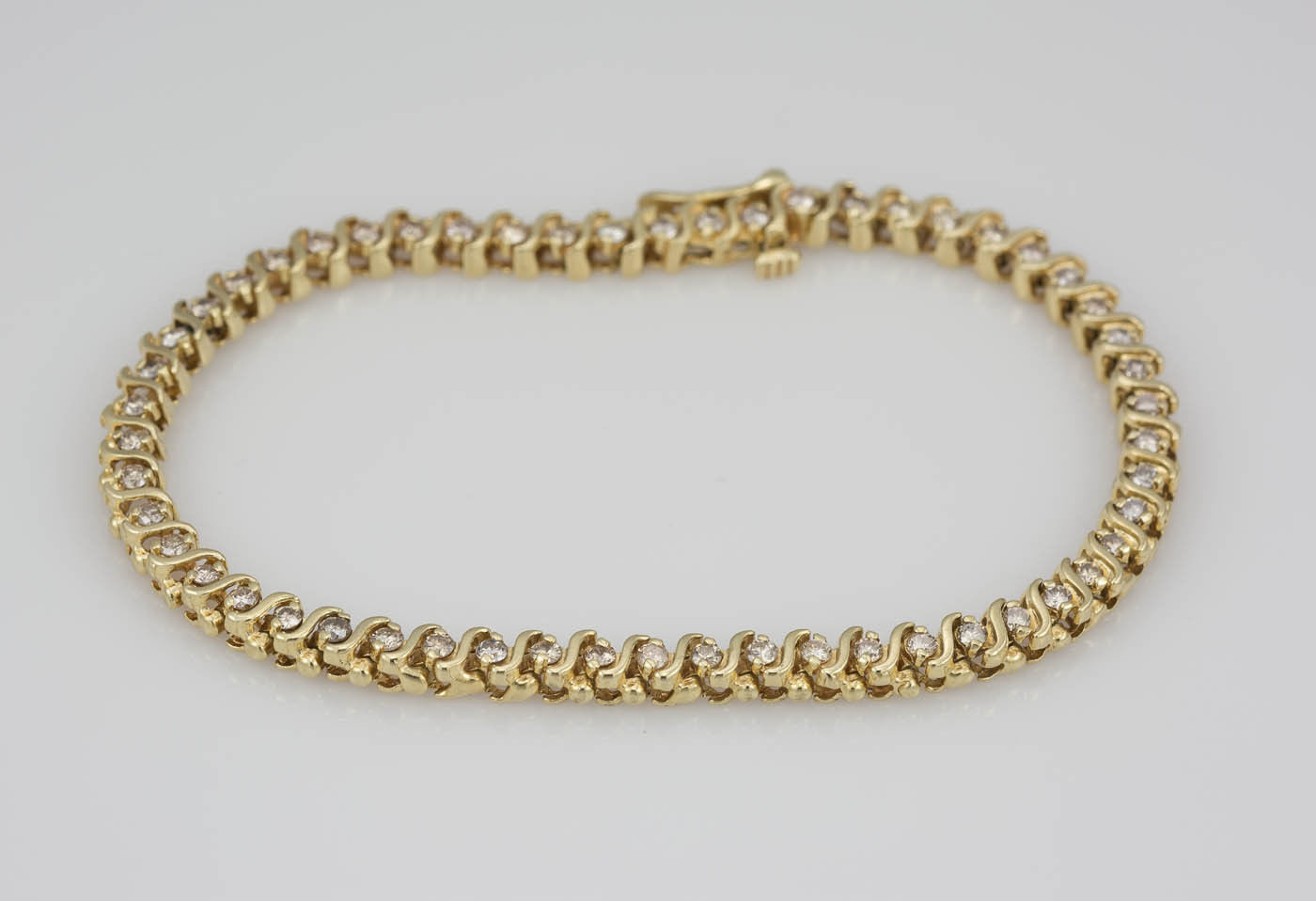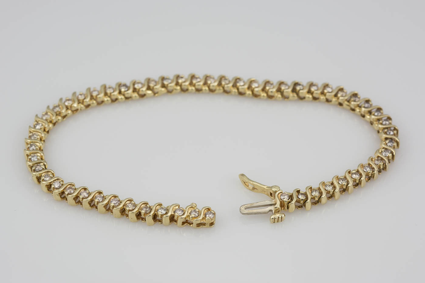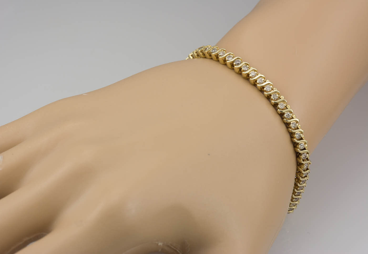14k Yellow Gold Ladies Diamond Tennis Bracelet, 1.50tdw - 7 Inch