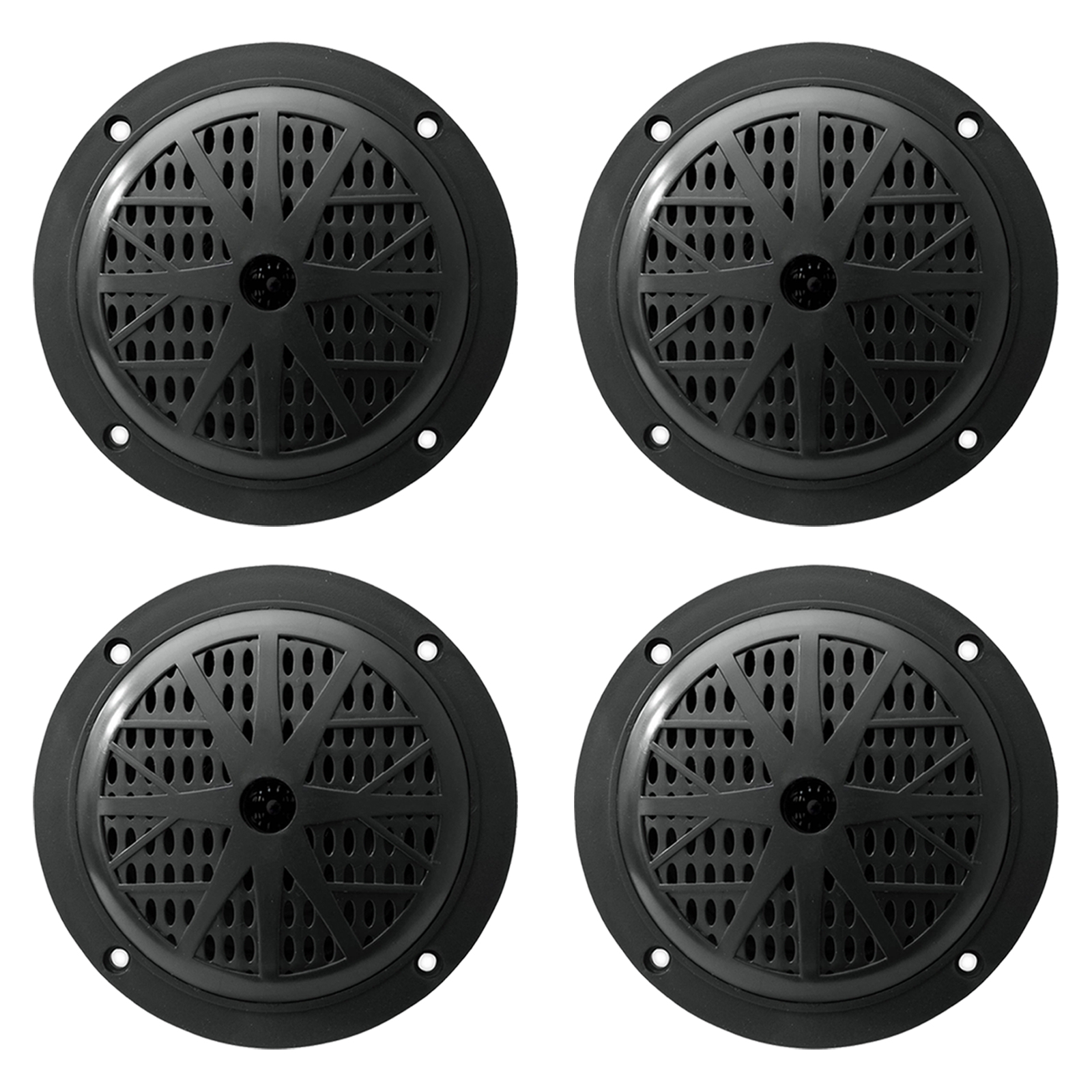 Pyle PLMR51B 5.25'' 100 Watt Peak Power 2-Way Full Range Marine Stereo Speakers (Black, Pair) (x2) Pyle - PLMR51B These Pyle Hydra series speakers are waterproof and designed for use in your boat, on the dock, by the pool, or simply mounted outside. They're designed with rust-proof mesh covers for quality protection. The PLMR51B is a black 5.25' dual-cone, full-range speaker suitable for marine use. They're rated at 100 watts for big power. The polypropylene cone accurately reproduces sound, and the molded ABS plastic basket keeps your sound distortion-free. General Features: