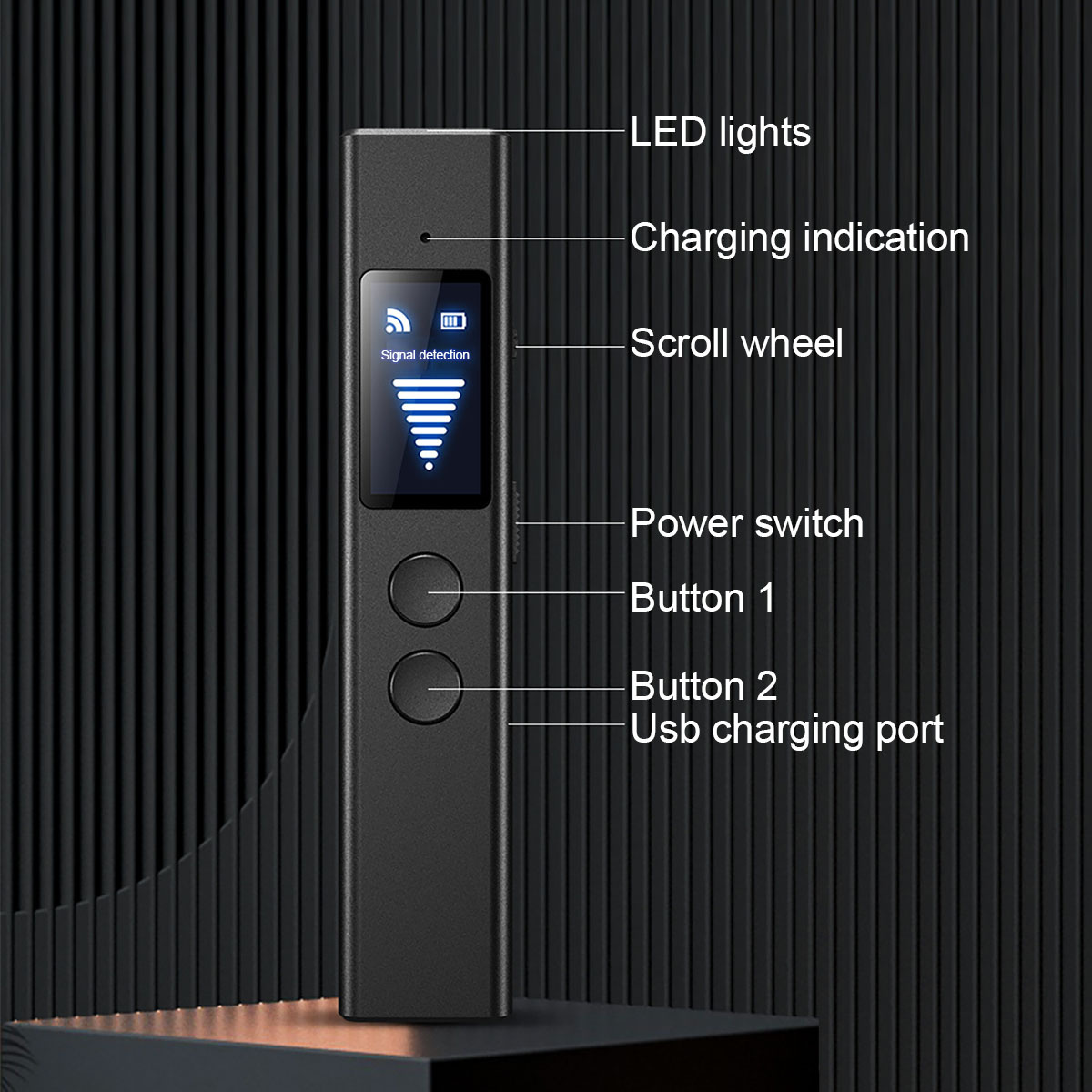 Receiving frequency range of this device's detector is 1Mhz to 6.5Ghz. Therefore, it can quickly detect wireless hidden cameras, VHF/UHF transmitters, GSM/3G/4G bugs, GSM/3G/4G GPS trackers, wireless signal sources, strong magnetic field signals, etc. Whether in private spaces such as hotels, cars, or bedrooms or in places where privacy is easy to leak, such as conference rooms, fitting rooms, or even public toilets, suitable choice.