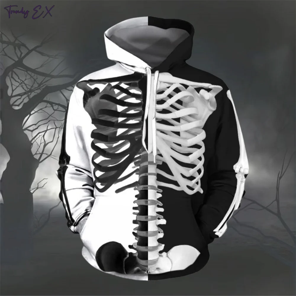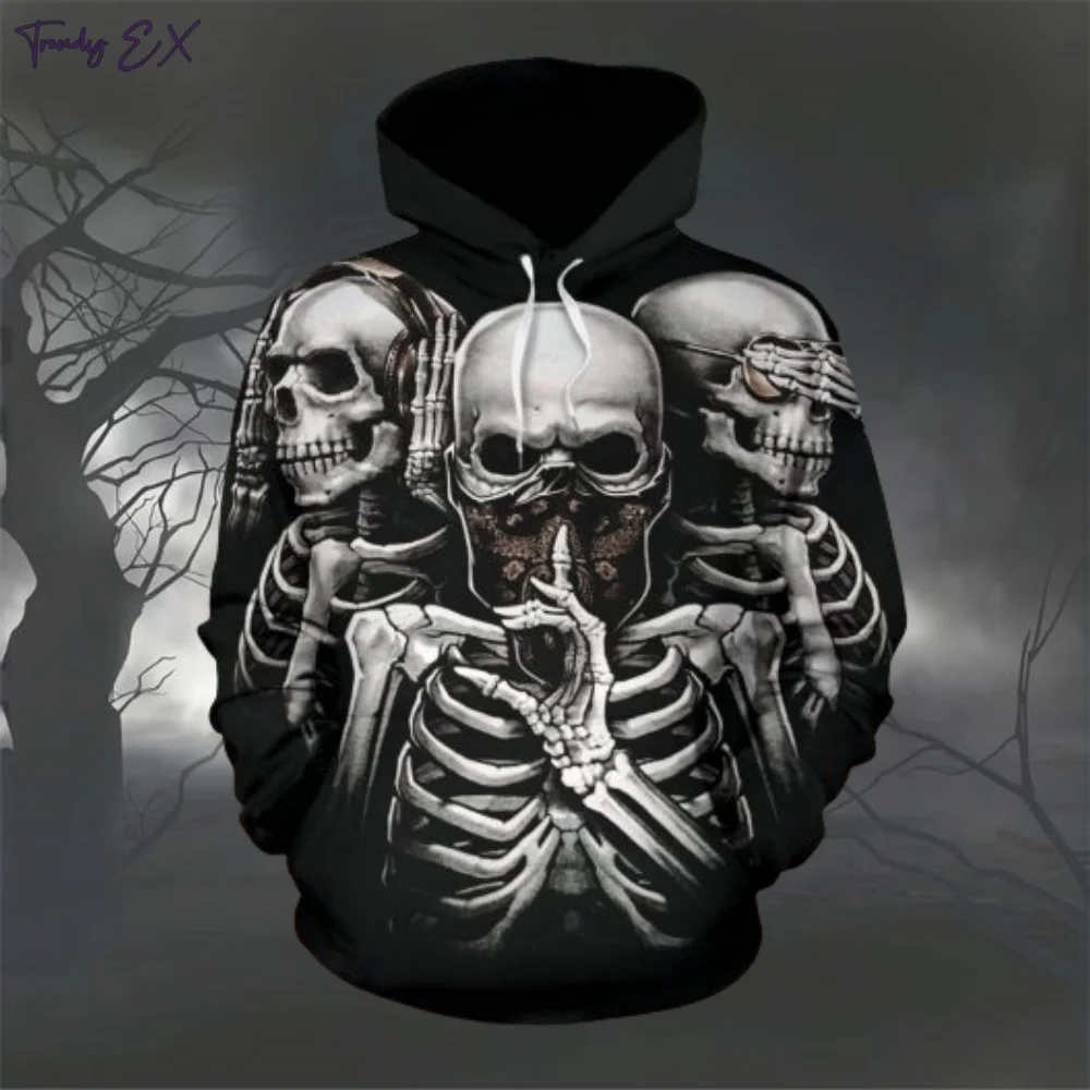 Skull Digital Print Sweatshirts for Men Fashion Street Fall Graphic Hoodies Blouse Comforts Kangaroo Pocket Design Mens Clothes