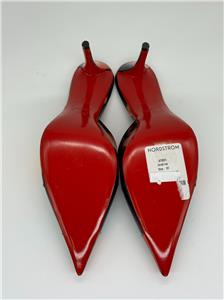 - Signature Louboutin red leather outsole
