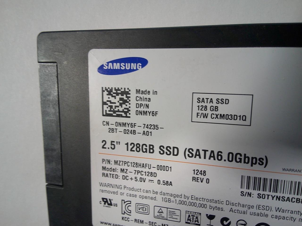 You are bidding for a Samsung MZ-7PC128D 128GB 2.5" SATA3 SSD Solid State Drive 0NMY6F This item has been successfully tested for power on. Item is offered with a 30-day money back guarantee. The photos are of the actual item that the winner will receive and no additional items are available to include in this auction that are not pictured in the photos.